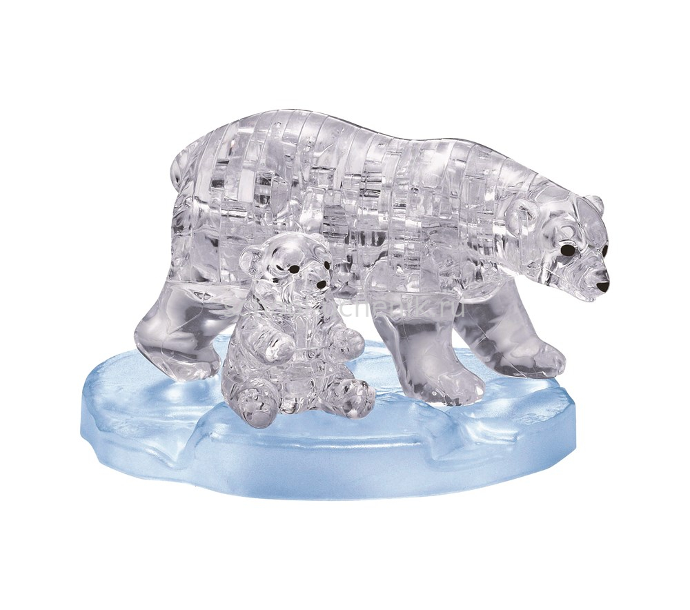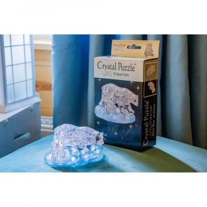 Эта удивительная 3D-головоломка словно выточенная из куска прозрачного льда! Соберите сразу две фигурки – медведицу с медвежонком. Милая композиция станет прекрасным украшением интерьера, символом домашнего очага. 3D-пазл состоит из 40 полупрозрачных деталей с креплениями, которые соединяются друг с другом в трехмерном пространстве. Готовая фигурка получится объемной и рельефной.