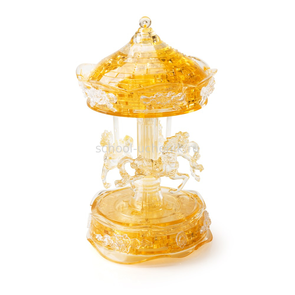 Один из самых потрясающих 3D-пазлов из серии Crystal puzzle – золотая карусель! Модель состоит из 83 деталей. Все части пазла переданы с точностью и любовью – от изящных лошадей в сбруе до винтажных вензелей на корпусе. Готовая карусель будет крутиться, лошадки пустятся с пляс, а вы сможете порадоваться своей работе.