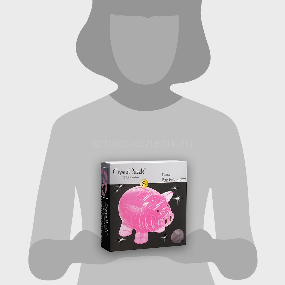 3D-пазл «Копилка «Хрюшка» из серии Crystal puzzle собирается из 93 деталей. Эту головоломку достаточно сложно и интересно собирать, а результатом станет полноценная копилка с прорезью для денег. Чтобы достать деньги, вам нужно просто разобрать пазл, а потом собрать его заново.