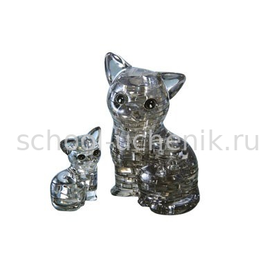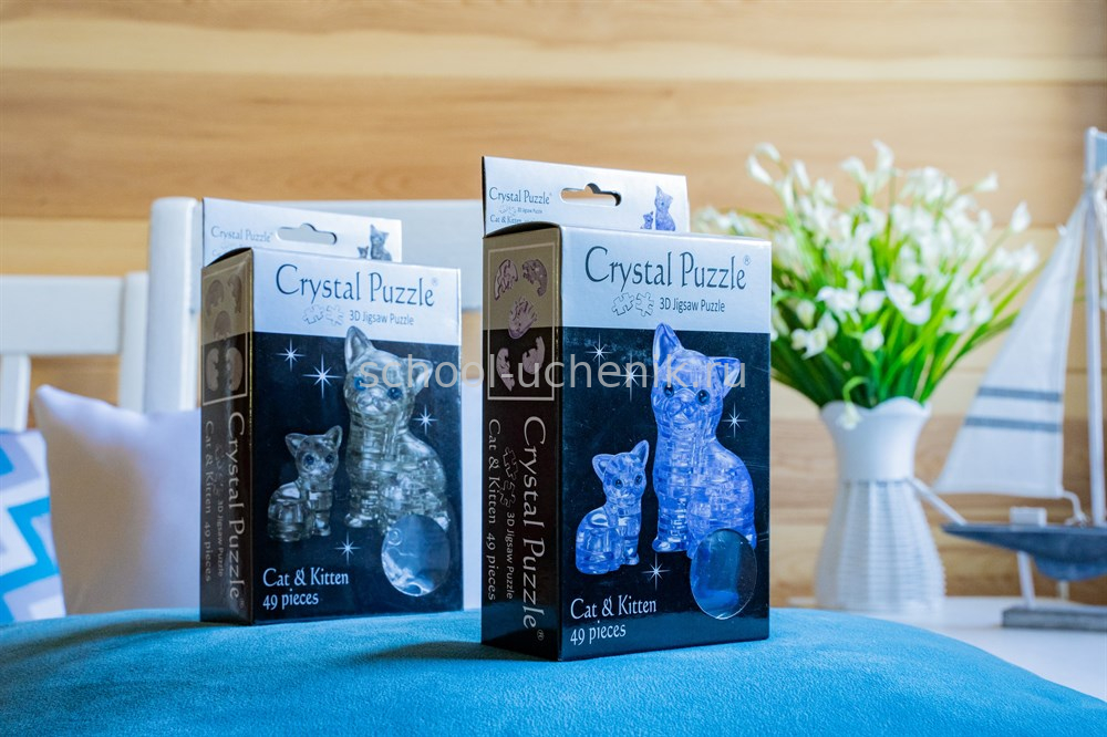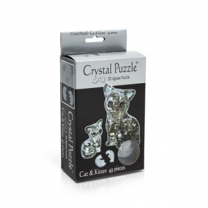 В этом наборе Crystal puzzle вы найдете сразу два объемных 3D-пазла! Взрослая кошка и ее маленький котенок собираются отдельно, но образуют единую композицию. Ваша задача – определить, какой из фигурок принадлежат полупрозрачные детали, и соединить их в правильном порядке. В наборе вы найдете 49 деталей и подробную инструкцию по сборке композиции.