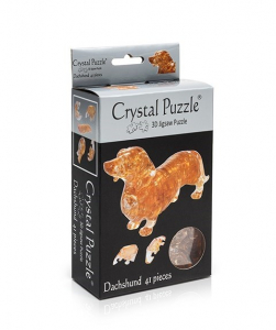 Этот красивый 3D-пазл из серии Crystal puzzle в форме таксы состоит из 41 детали. Модель интересно собирать, при этом c ней справится даже новичок. Объемные детали соединяются практически без стыков, и вся конструкция получается прочной и гладкой. В собранном виде такса выглядит как сувенир из полупрозрачного стекла, замечательно смотрится в интерьере.