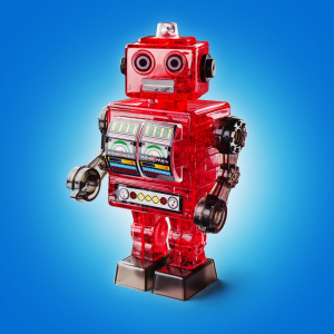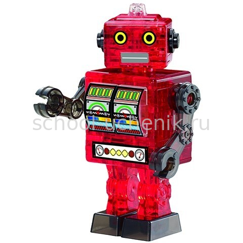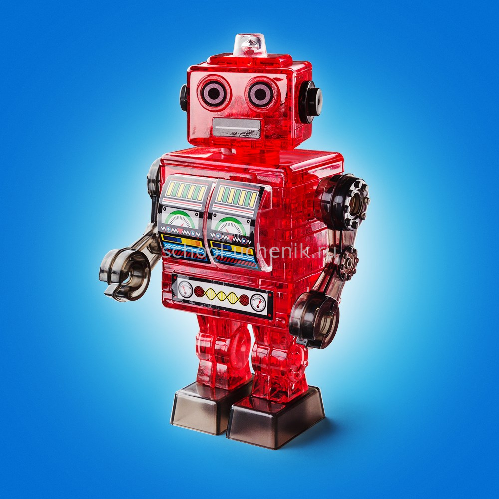 Этот симпатичный робот в ретро-стиле из серии Crystal puzzle станет отличной игрушкой для ребенка или украшением интерьера. Соберите 3D-пазл из 39 деталей, и у вас получится прочная фигурка с подвижными руками. Все детали сделаны из полупрозрачного пластика. Они прочно соединяются друг с другом и не рассыпаются.