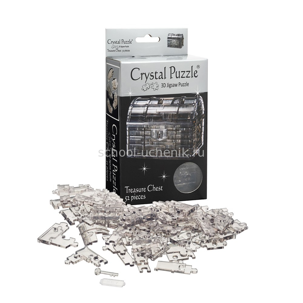 Это волшебный сундучок – не просто красивая кристальная фигурка, а настоящий 3D-пазл из серии Crystal puzzle из 52 деталей! Собрав пазл правильно, вы сможете открывать сундук с помощью специального ключика, хранить в нем памятные сердцу вещи и использовать в качестве шкатулки. Трехмерная головоломка повышенной сложности придется по душе всем, кто любит непростые задачи.