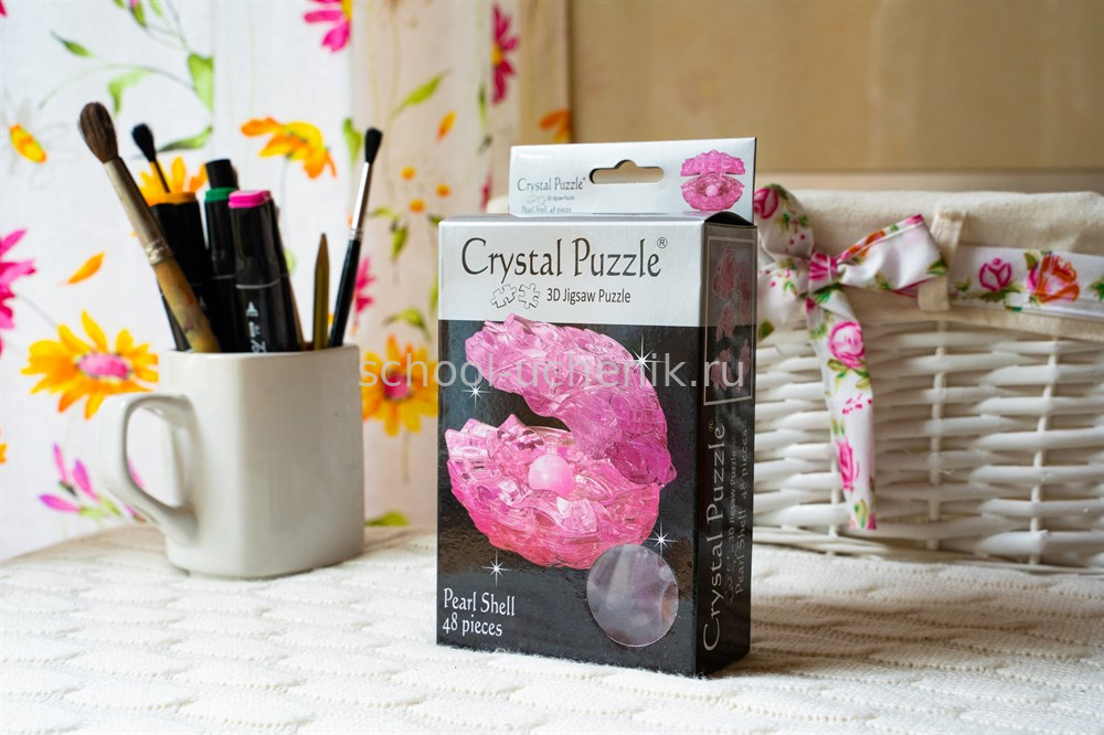 Этот красивый 3D-пазл из 48 деталей скрывает в себе сюрприз – черную жемчужину! Соберите оригинальный пазл из полупрозрачных элементов, и вы сможете открывать и закрывать створки, а также прятать внутри раковины свои сокровища. Во всех наборах бренда Crystal puzzle вы найдете инструкцию-подсказку. Попробуйте собрать пазл самостоятельно или воспользуйтесь схемой сборки из инструкции.