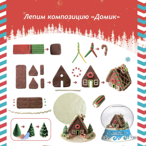 В инструкции вы найдете подробное руководство по лепке двух композиций ,«Дед Мороз» и «Пряничный домик». Вы можете лепить по инструкции или создавать свою композицию для вашего шара.