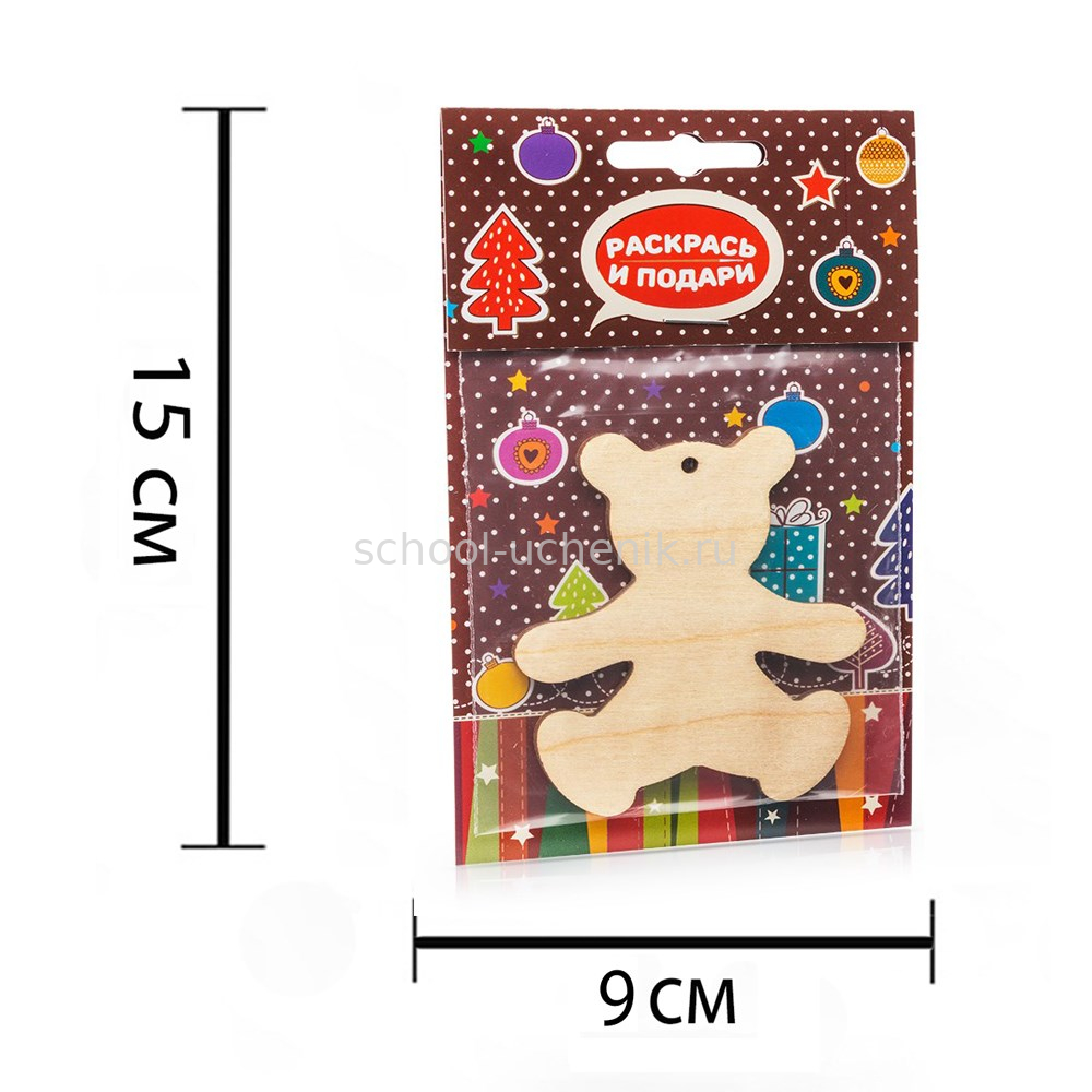 Мишка – классическая игрушка, символ детства. Деревянную игрушку можно раскрасить с двух сторон, пользуясь красками, фломастерами или карандашами. Поверхность уже обработана, так что можно сразу приступать к творчеству. Используйте поделку в качестве елочной игрушки или декора тематических композиций.