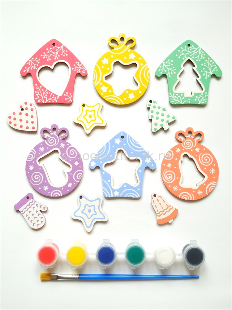 | В наборе: | краски, кисточка, деревянные заготовки |