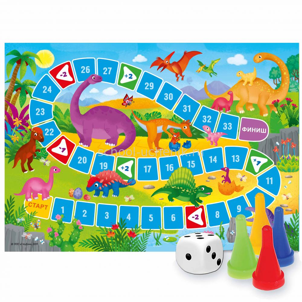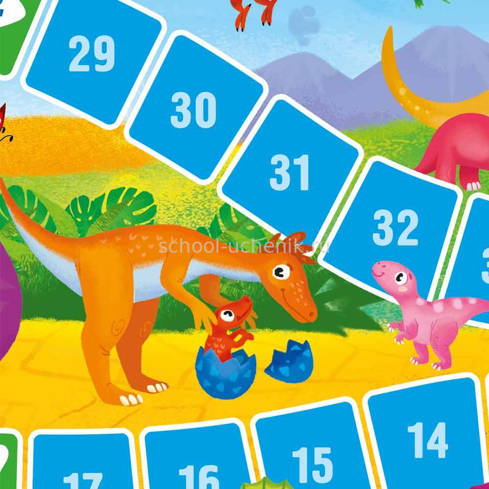 Настольная игра - отличная замена гаджетам и веселый отдых всей семьей. В игру-ходилку для малышей “Динозавры” можно играть командой от 2х до 4х человек и изучать различные виды динозавров, живших миллионы лет назад. Яркие загадочные рептилии заинтересуют ребенка надолго. Игра тренирует основы счета, расширяет кругозор и развивает память. Вооружайтесь фишками и кубиком! Мы отправляемся на миллионы лет назад!