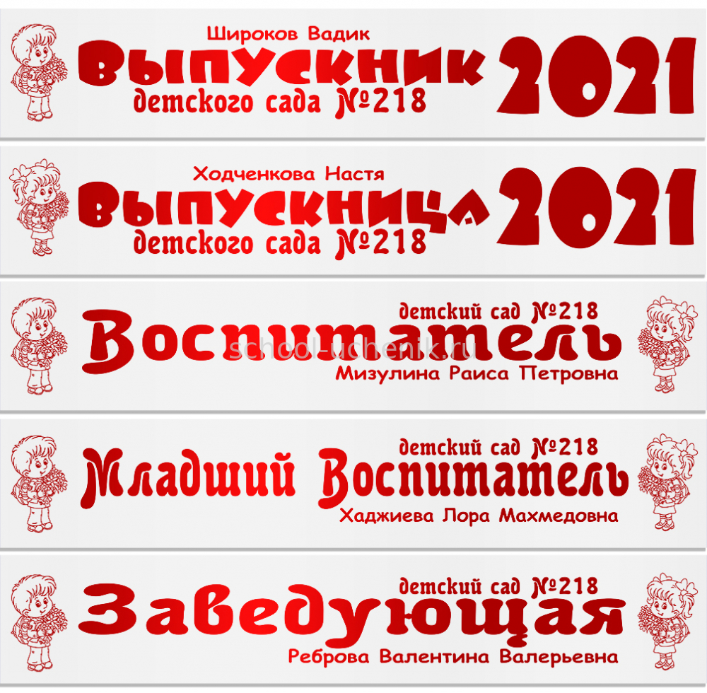 Именные атласные ленты выпускникам и учителям "Девочка и мальчик" цвет на выбор