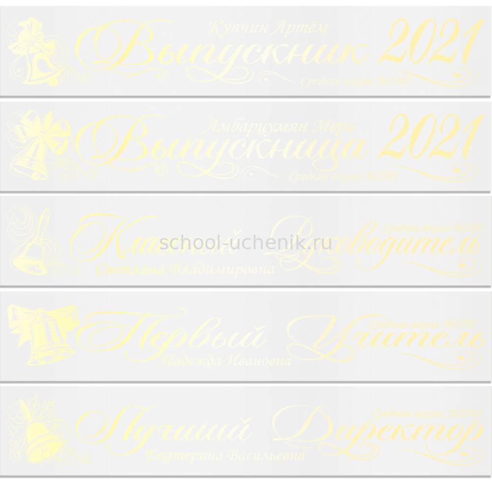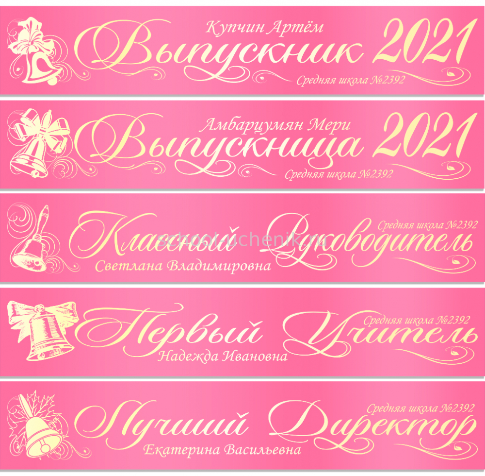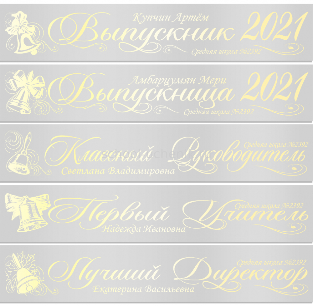 Именные атласные ленты выпускникам и учителям "Колокольчик" цвет на выбор