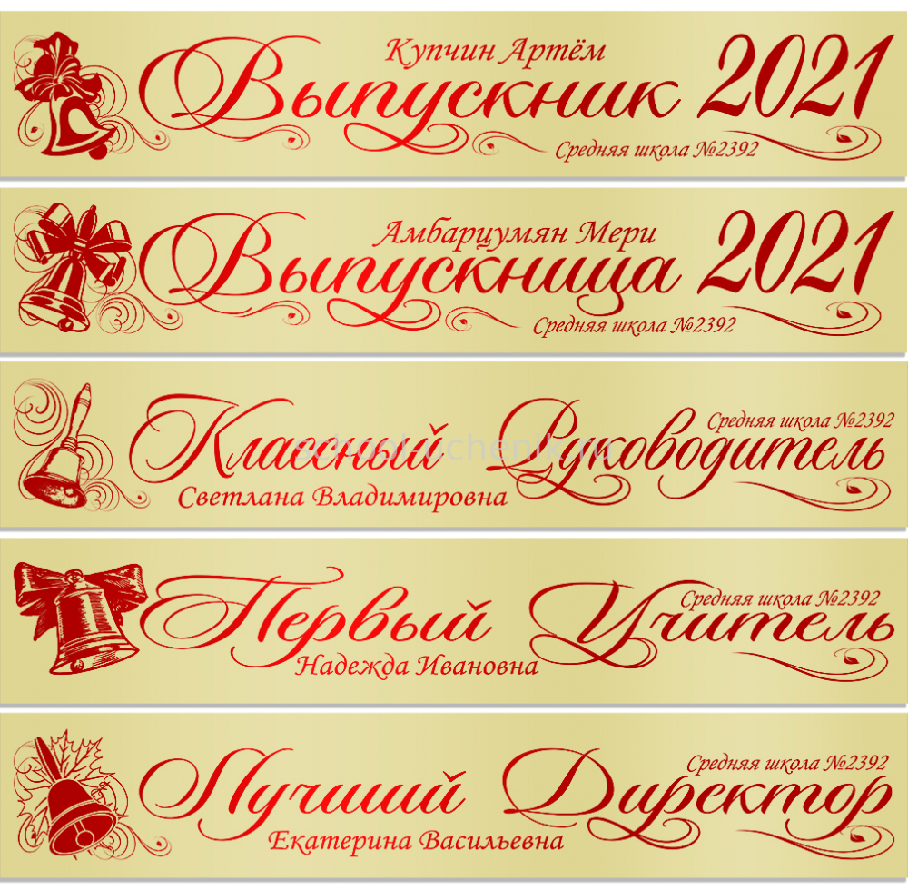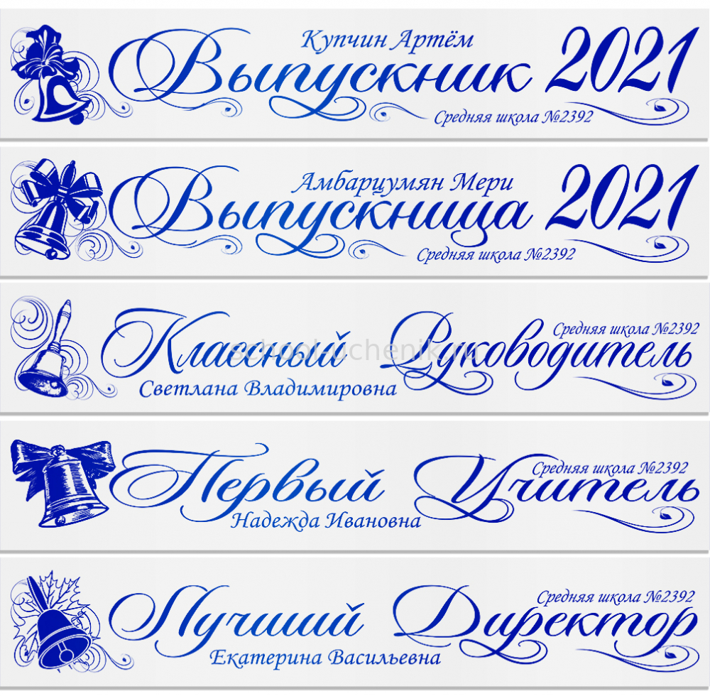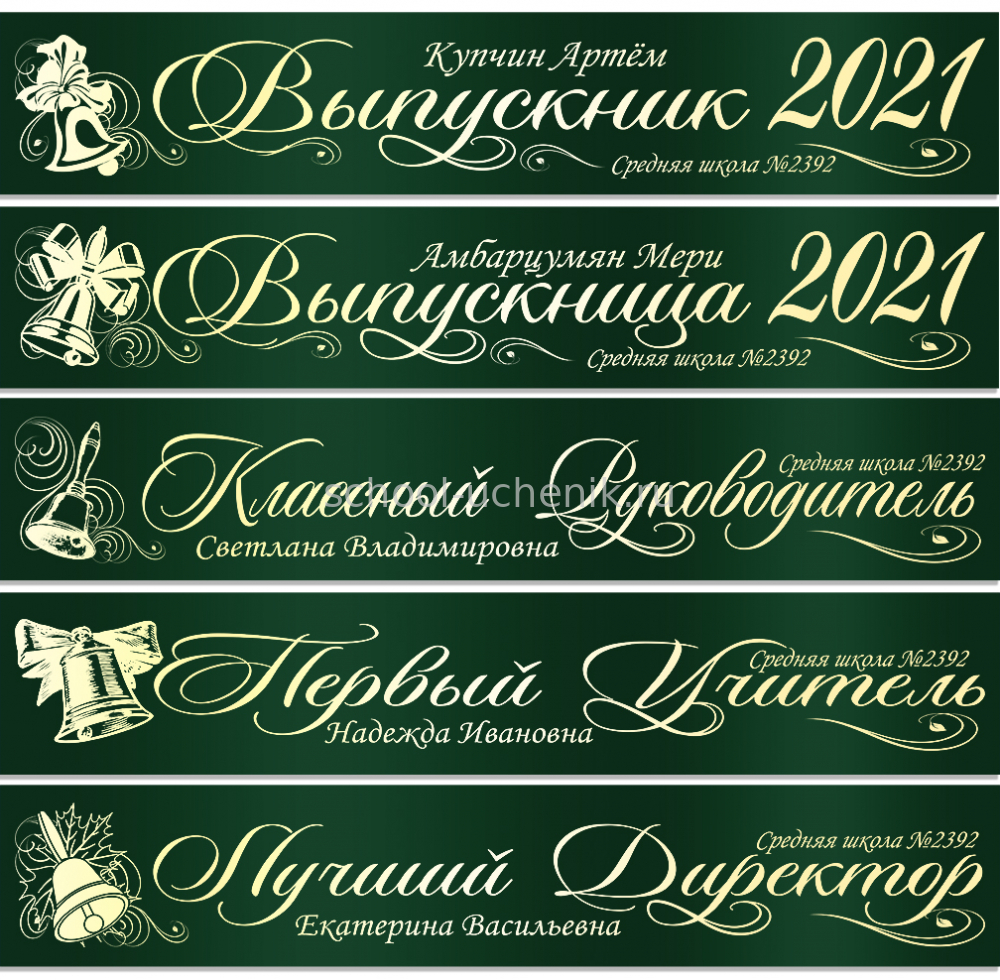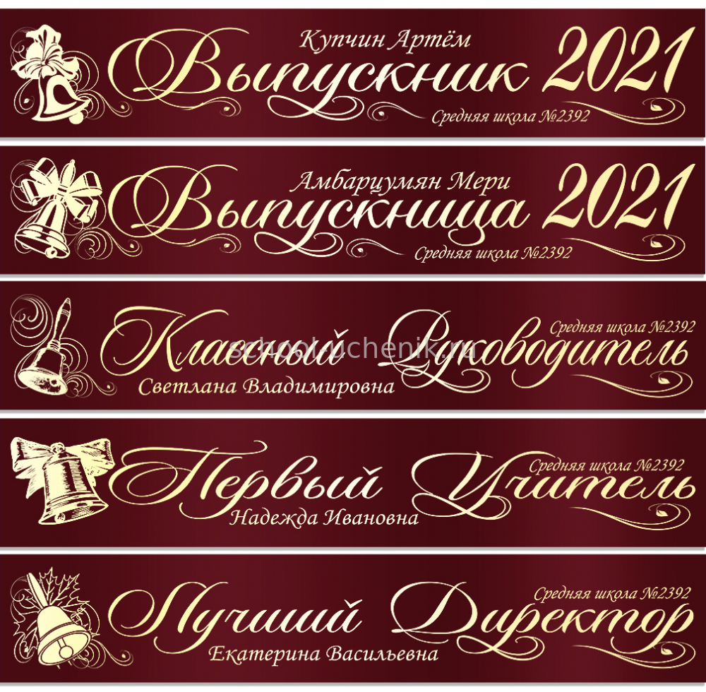 Именные атласные ленты выпускникам и учителям "Колокольчик" цвет на выбор