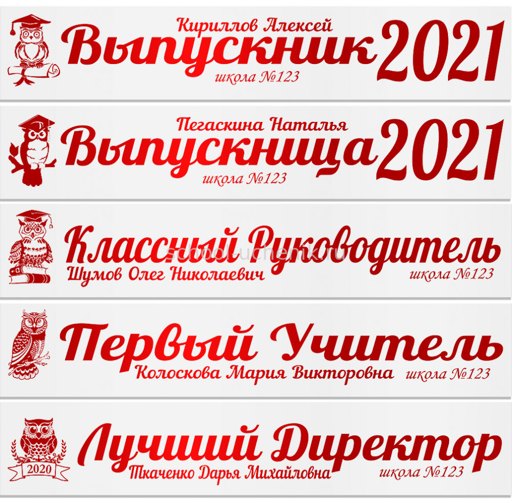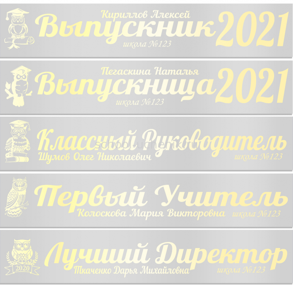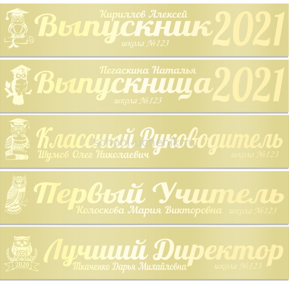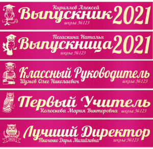 Именные атласные ленты выпускникам и учителям "Сова" цвет на выбор