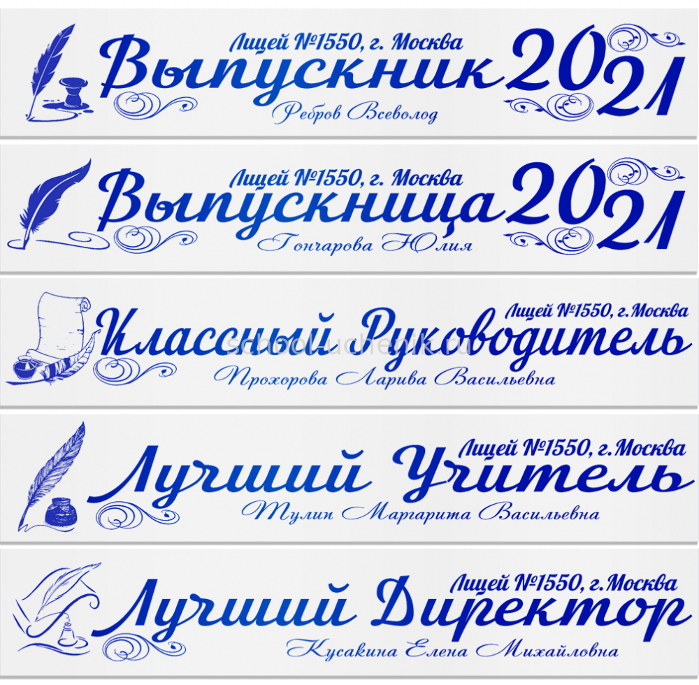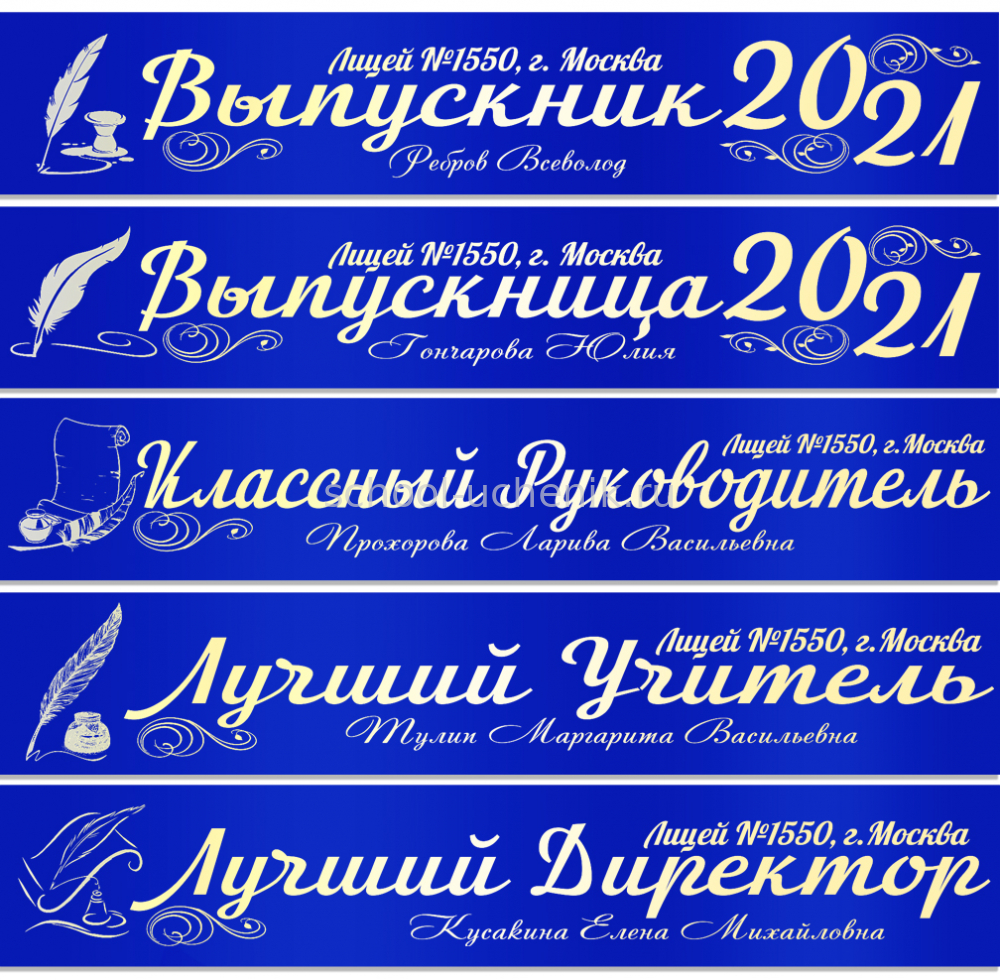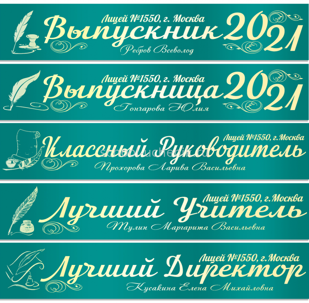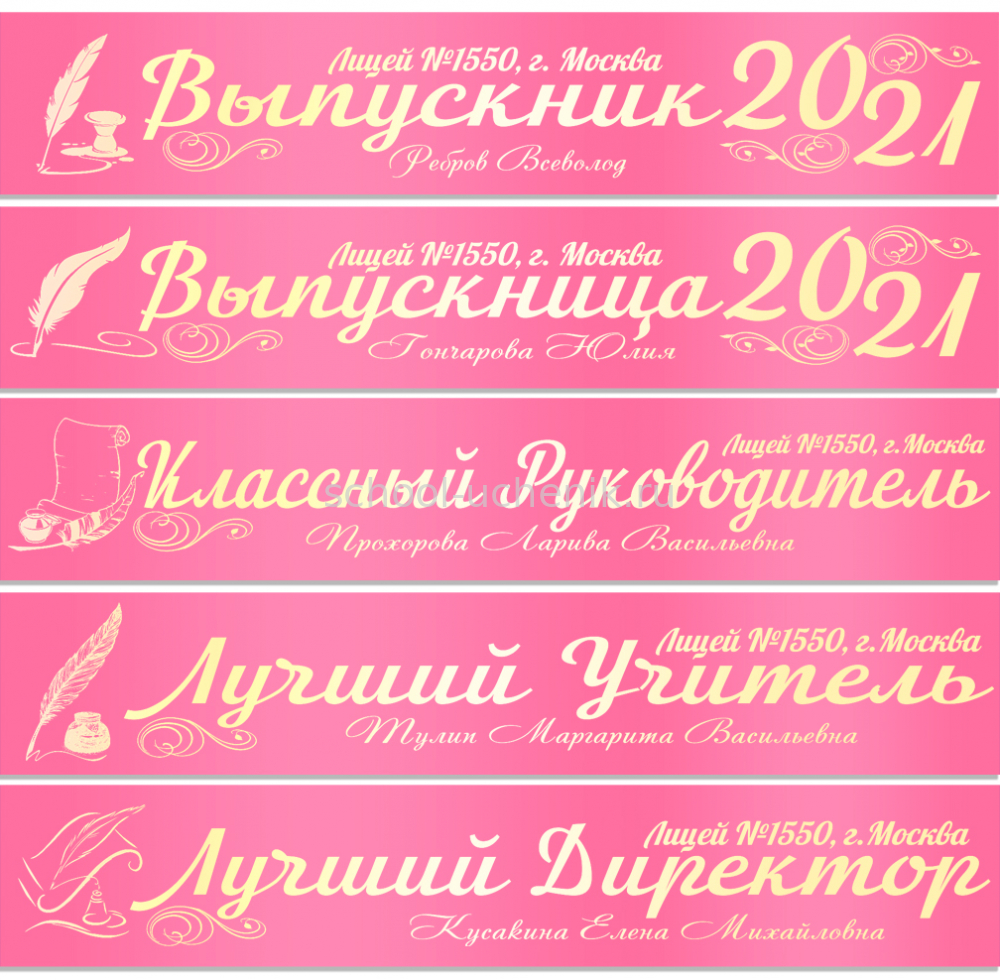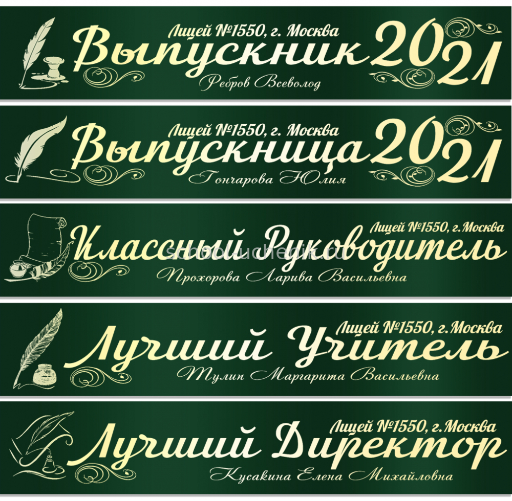 Именные атласные ленты выпускникам и учителям "Перо" цвет на выбор