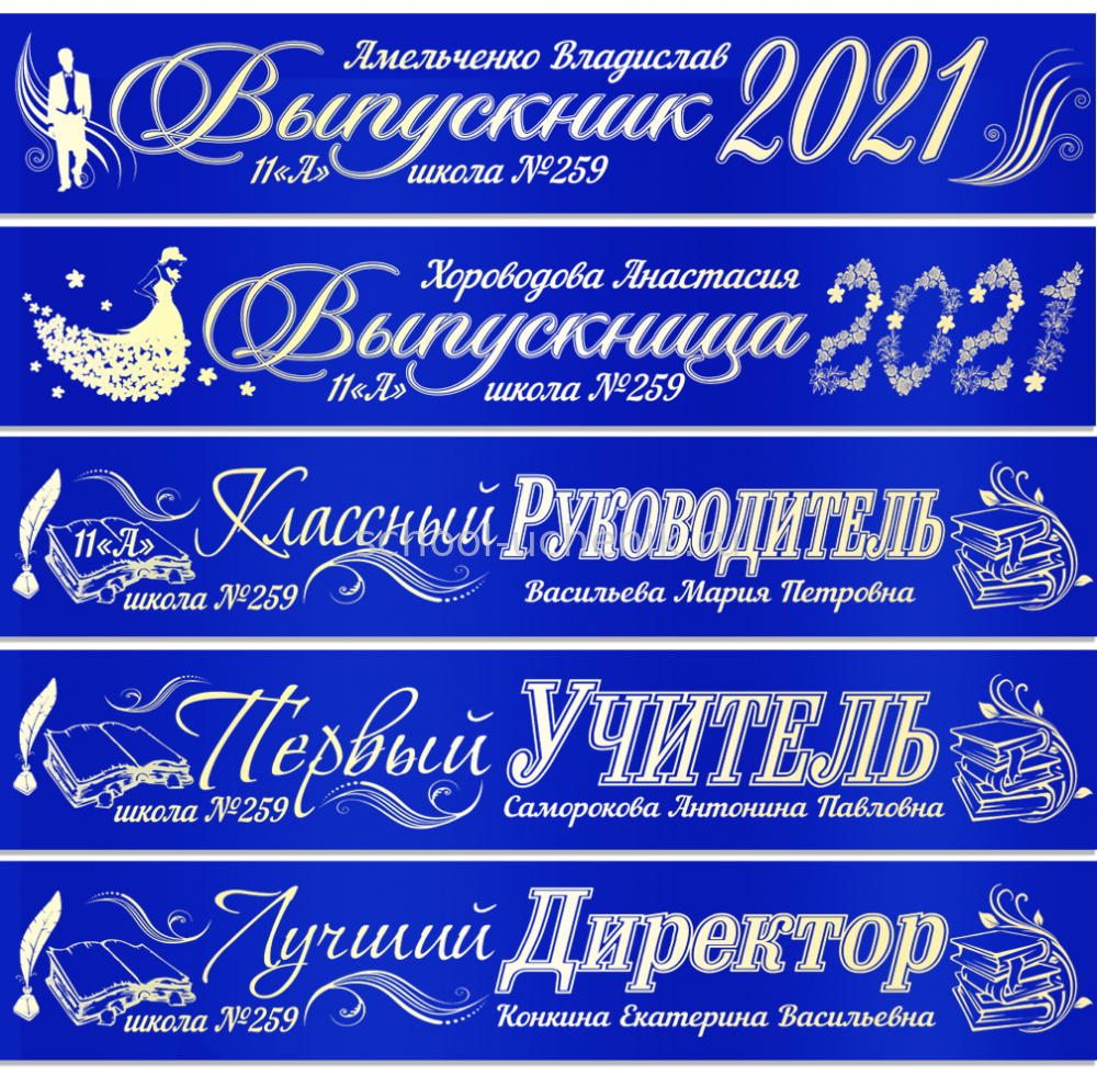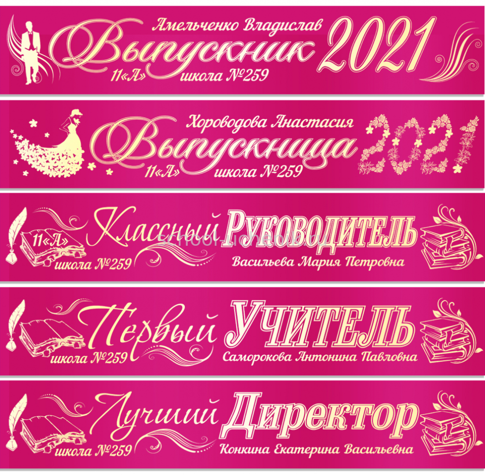 Именные атласные ленты выпускникам и учителям "Выпускник" цвет на выбор