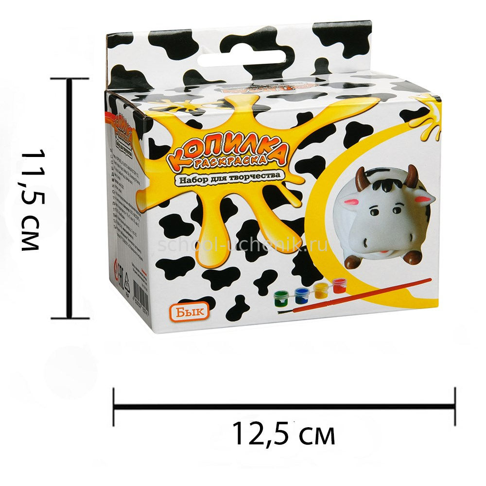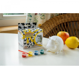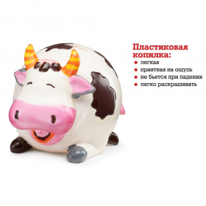 В комплекте: копилка из пластика, краски 4 цветов, кисточка