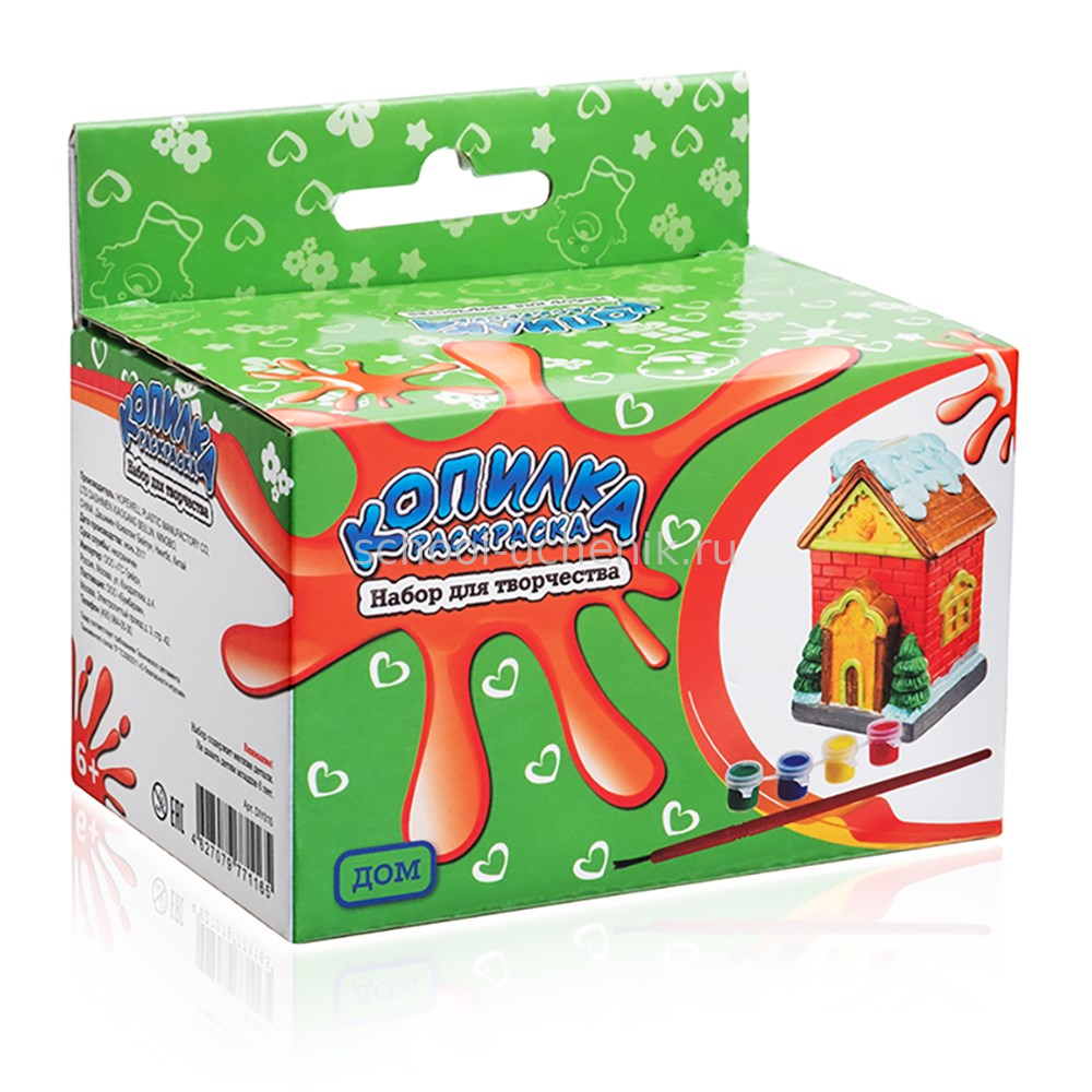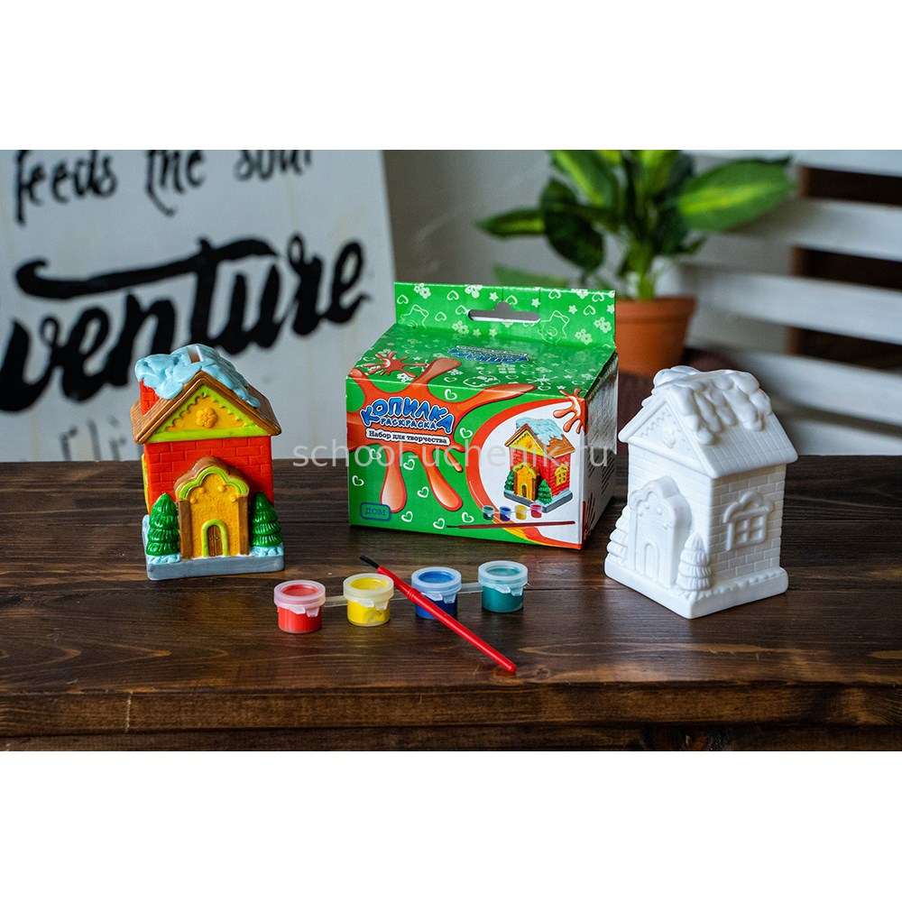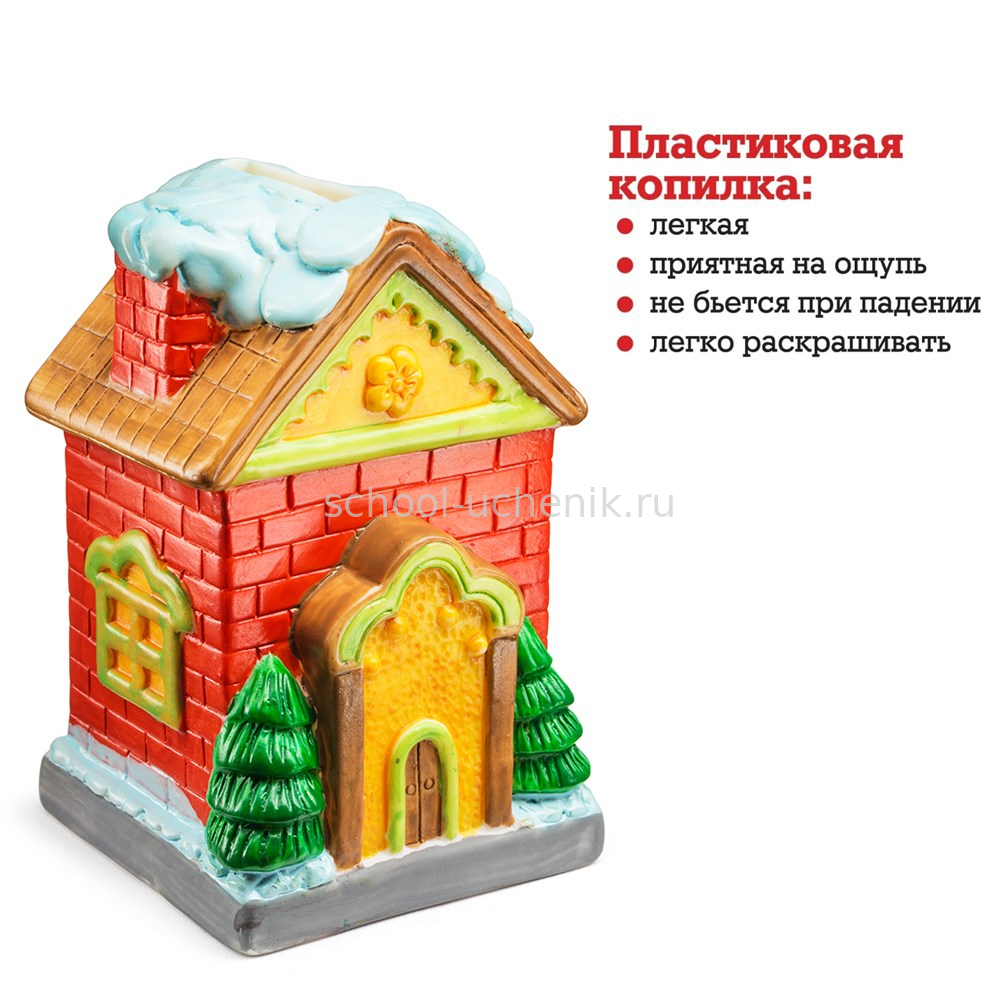 Перед вами копилка-раскраска. В набор входит: копилка, краски и кисточка. Стоит приложить немного усилий и у вас получится милый и уютный домик! Материал копилки — приятный на ощупь пластик, на него прекрасно ложится краска, входящая в набор. Копилка рельефная, поэтому ребенок может с легкостью реализовать свой творческий потенциал, развивая аккуратность и усидчивость!