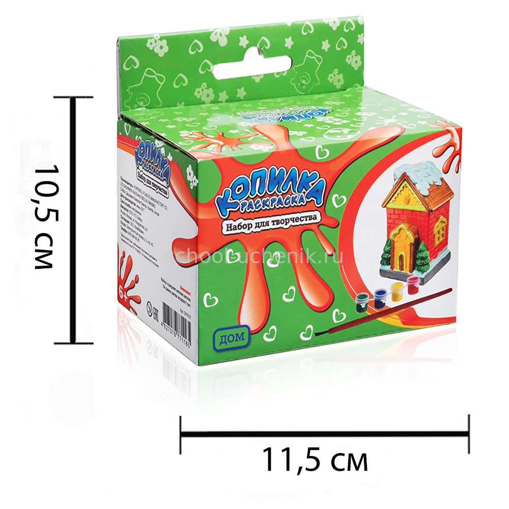В комплекте: копилка из пластика, краски 4 цветов, кисточка