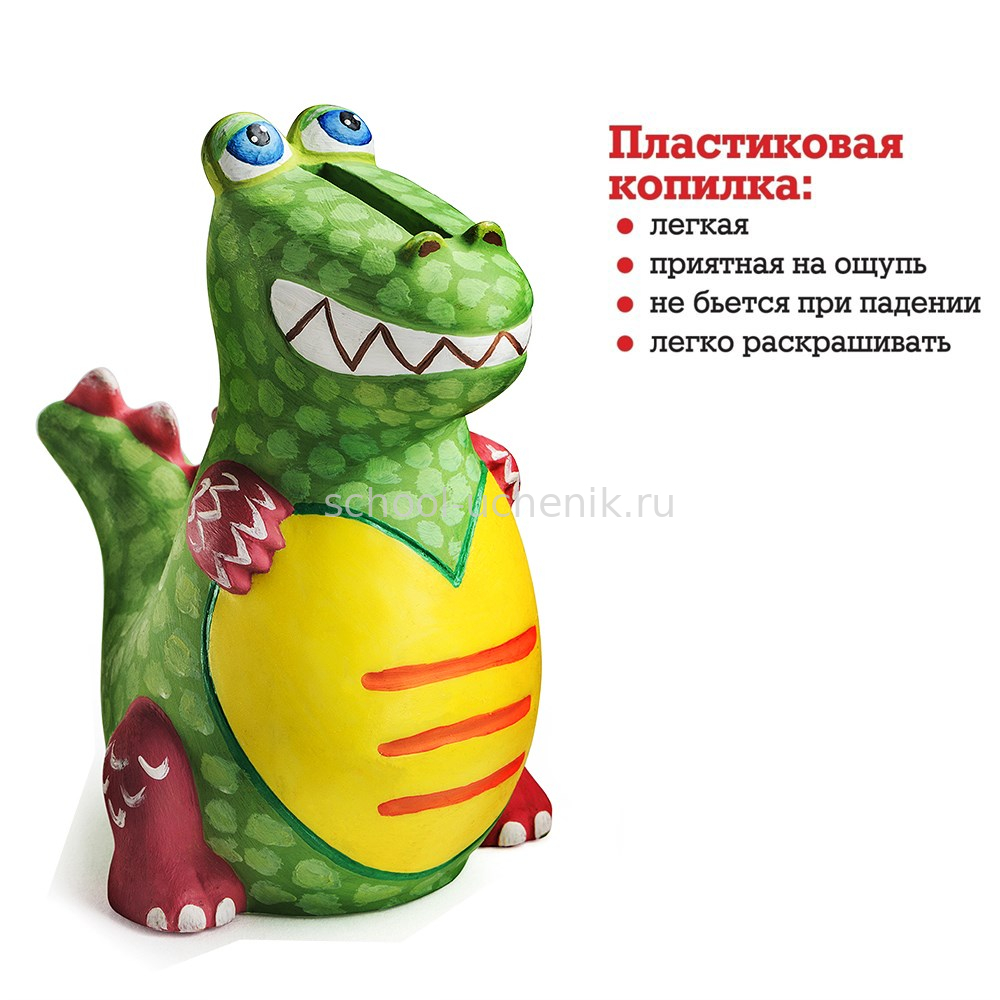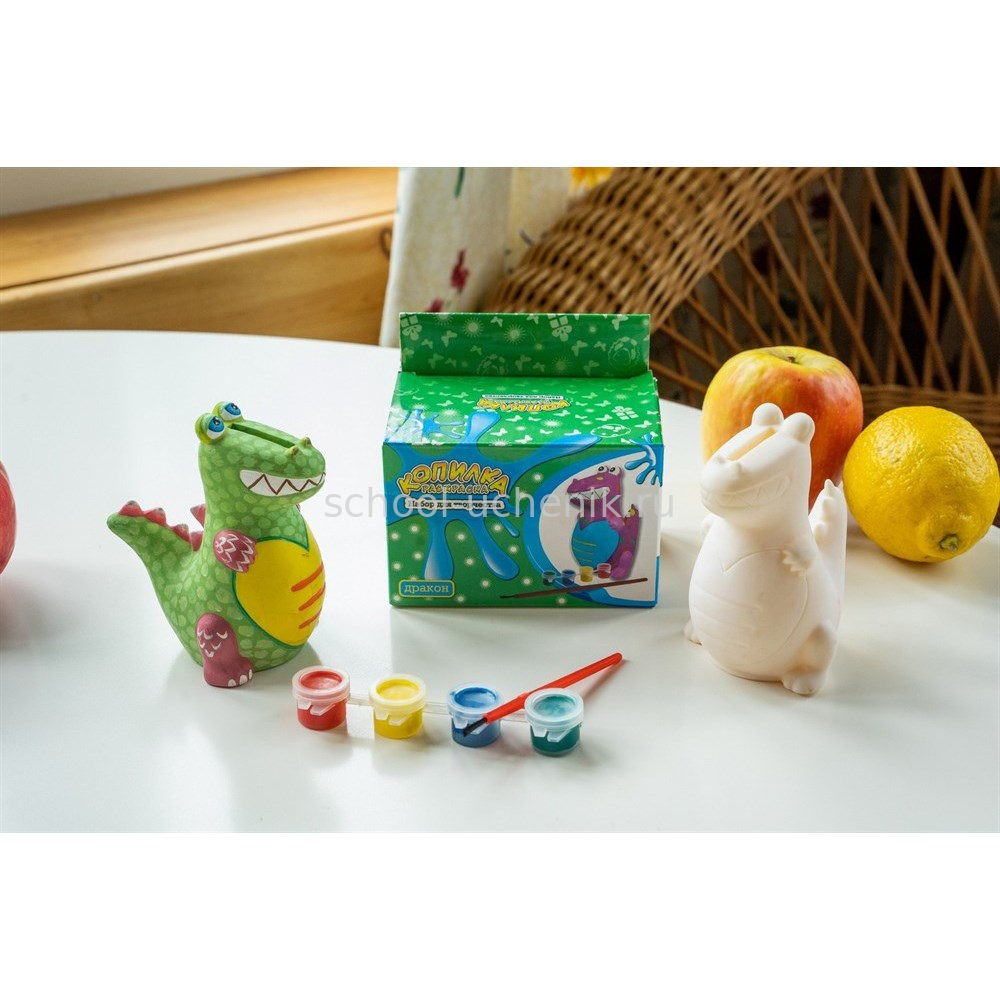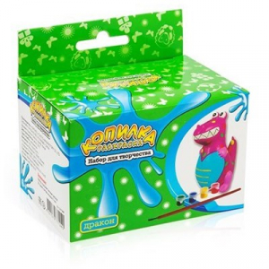 В комплекте: копилка из пластика, краски 4 цветов, кисточка