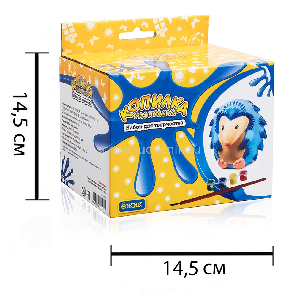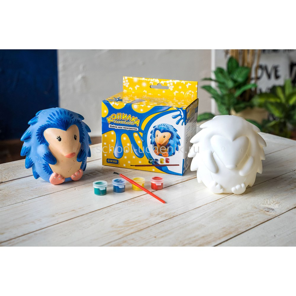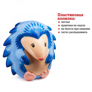 Забавный ежик не просто красивая фигура, а настоящая копилкп-раскраска. В наборе есть все необходимое, чтобы раскрасить копилку: основа для раскрашивания, краски и кисточка. Процесс раскрашивания станет простым и быстрым, так как краски прекрасно ложатся на приятный материал. Они быстро сохнут и уже через час копилку можно использовать по назначению.