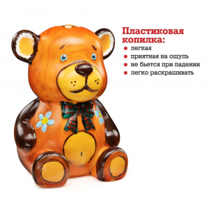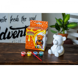 Копилка является частью набора для творчества, который познакомит ребенка с росписью объемных фигур. Предложите ребенку раскрасить медведя по своему вкусу, проявив фантазию и аккуратность. Копилка превратится в красивую поделку, сделанную своими руками.