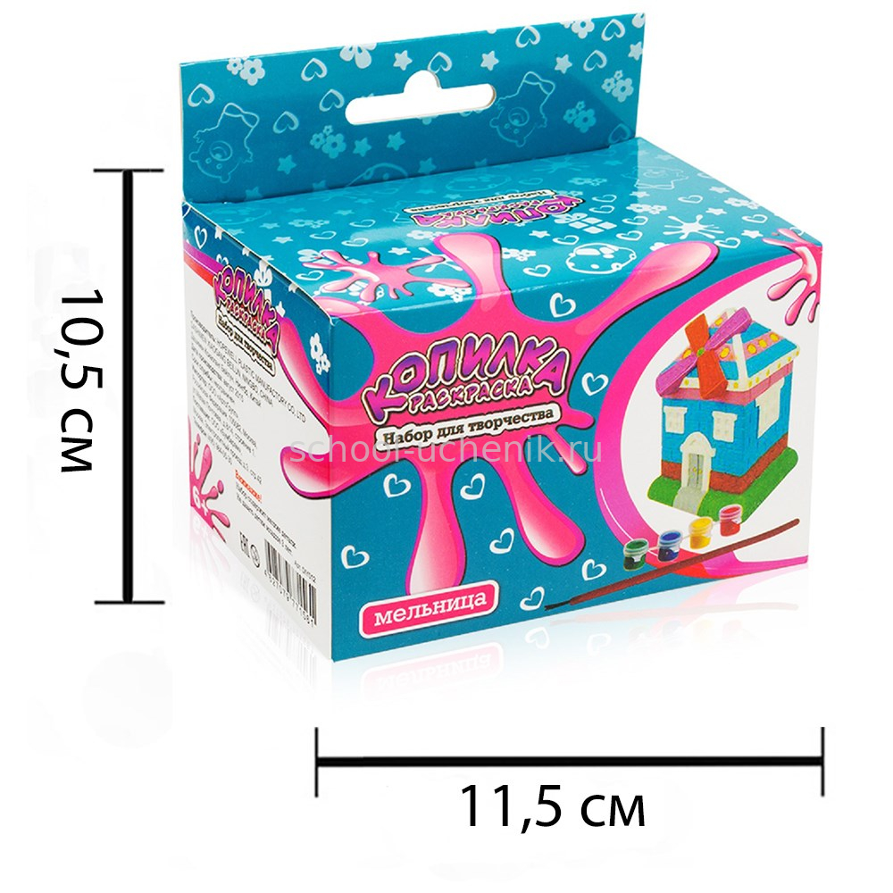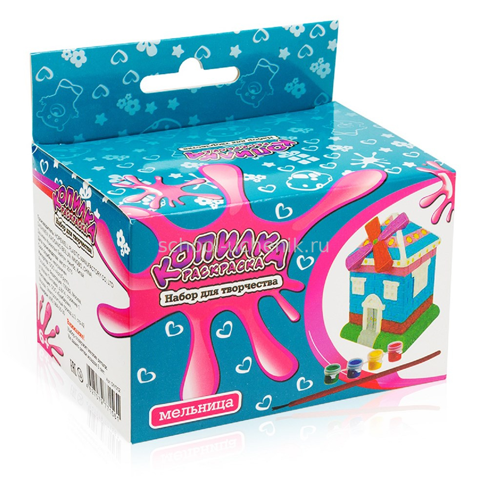 Раскрасьте копилку-раскраску, и у вас получится яркая и красивая мельница, которая может использоваться в качестве копилки. Рельефная поверхность поможет аккуратно и, главное, быстро создать маленький шедевр, который украсит интерьер и станет гордостью вашего ребенка. Набор для творчества включает в себя копилку, краски и кисточку.