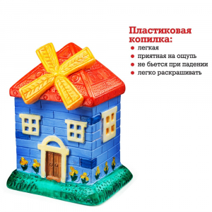 В комплекте: копилка из пластика, краски 4 цветов, кисточка