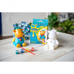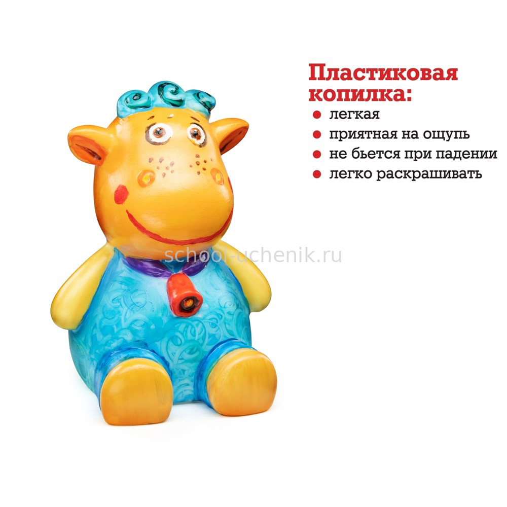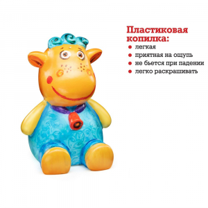 В комплекте: копилка из пластика, краски 4 цветов, кисточка