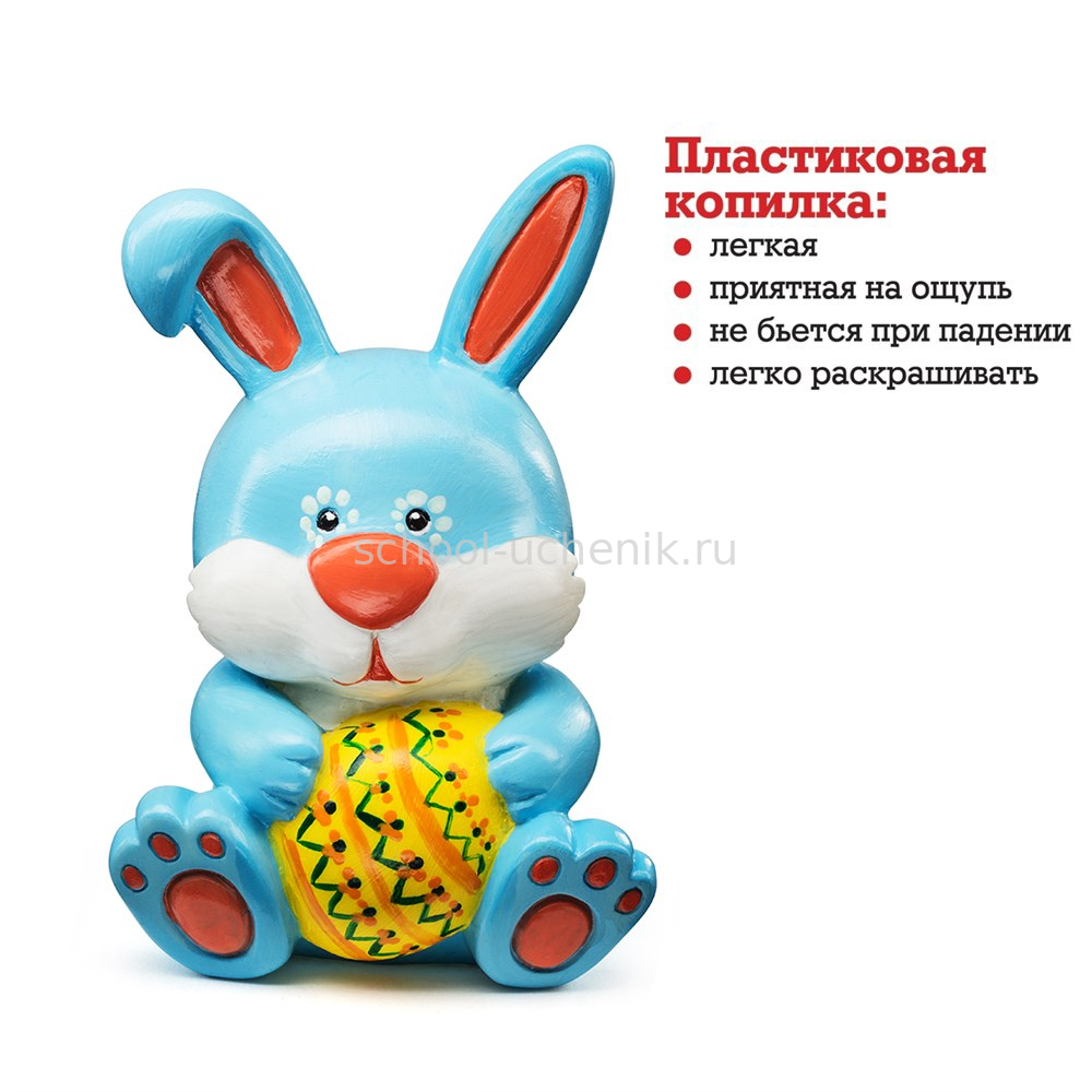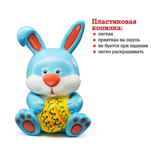 Эта копилка-раскраска выполнена в форме любимого детского персонажа – веселого зайчонка. В наборе есть все необходимое для творческого процесса: копилка из пластика, краски и кисточка. Предложите ребенку самому раскрасить зайку и создать свою неповторимую копилку.