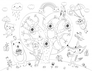 Многоразовый коврик-раскраска станет любимой игрушкой ребенка. На коврике уже нанесены контуры изображения: сказочное дерево и забавные обитатели леса. Ребенок сможет закрасить участки картинки разными цветами и создать красочное полотно. На коврике можно рисовать сколько угодно! Краски отмываются влажной губкой, и коврик снова готов к раскрашиванию. Его можно использовать многократно, и он будет долго радовать ребенка.