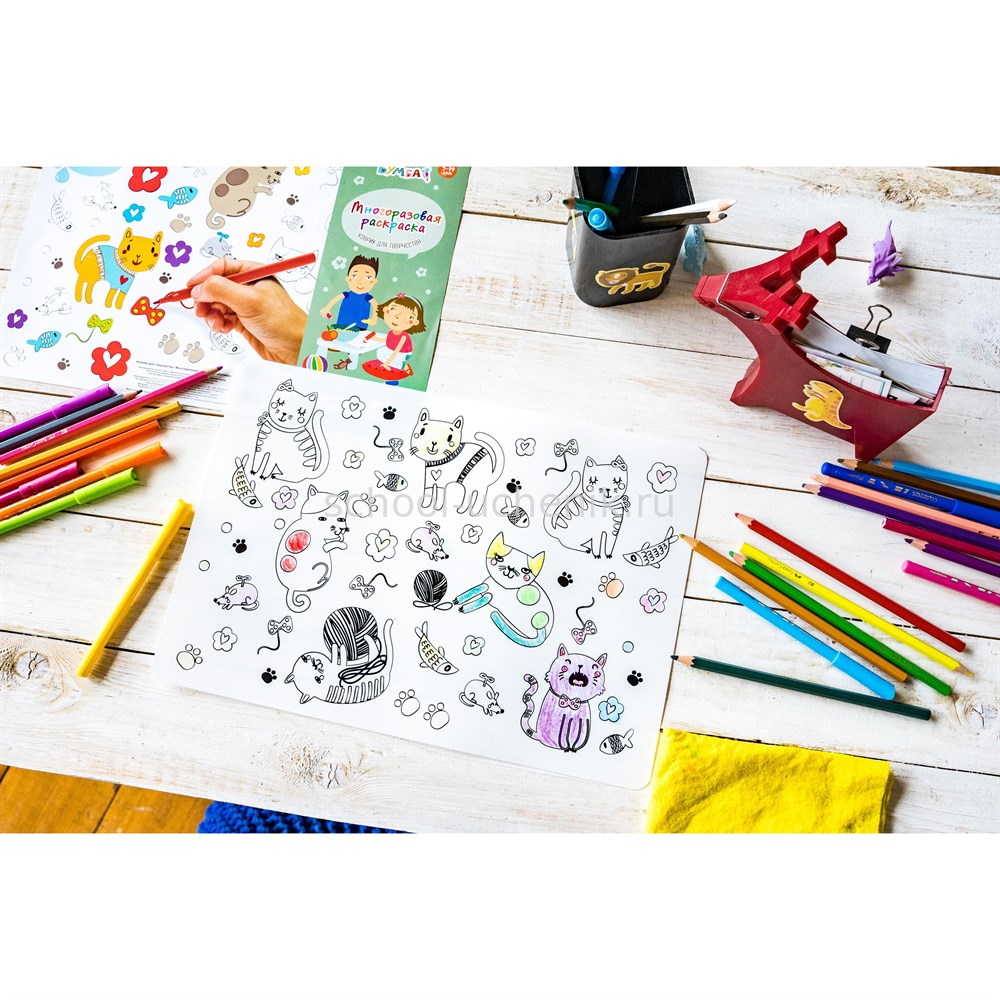 Коврик для творчества. Многоразовая раскраска «Котики» (M)