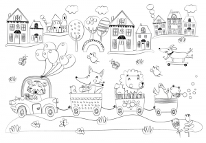 Веселые звери отправляются в путешествие! По дороге они проезжают мимо необычного города. Как он будет выглядеть — решать только ребенку. Подарите ему этот замечательный многоразовый коврик-раскраску для творчества, и он обязательно полюбит рисование. На поверхность уже нанесены контуры будущего изображения, которое нужно только раскрасить фломастерами или карандашами. Причем краску можно в любой момент стереть и начать рисовать снова.