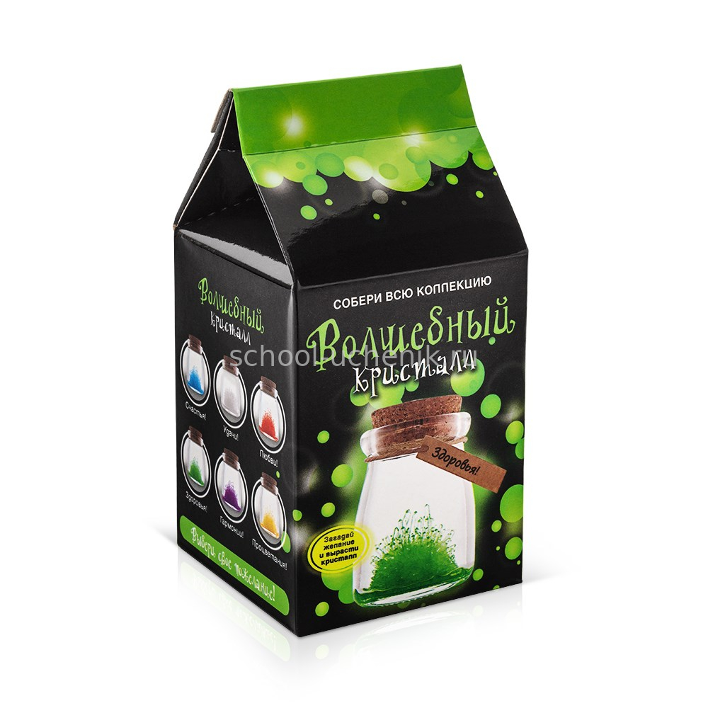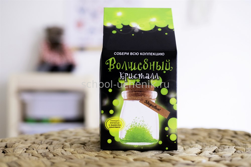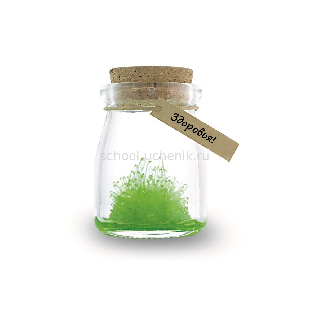 Воспользуйтесь ингредиентами из набора, смешайте их по инструкции и вырастите удивительный кристалл в красивой декоративной баночке. Украсьте баночку с кристаллом биркой с пожеланием здоровья. Подарите родным этот волшебный кристалл зеленого цвета, и он станет оберегом для самых дорогих вам людей!