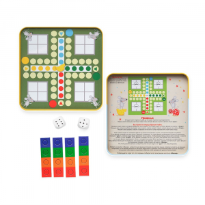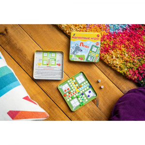 Магнитная игра «Лудо» — очень динамичная и азартная! Проведите свои фишки по игровому полю и заведите их в «Дом» раньше, чем это сделают другие игроки. Эту настольную игру удобно брать даже в путешествие — магнитные фишки плотно крепятся к игровому полю и позволят вам играть в любых условиях.