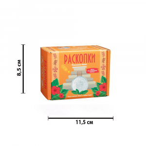 Откройте для себя древнюю цивилизацию майя вместе с нашим набором раскопок! В красочной коробке помимо отличных инструментов — деревянного стека и молоточка — лежит познавательная мини-викторина. Отвечайте на вопросы и узнайте много интересных и реальных фактов из жизни древних цивилизаций! В окаменелом грунте спрятана настоящая монета, упакованная в индивидуальный футляр (совсем как у профессиональных коллекционеров!), а также россыпь красивых природных камней. Для того чтобы искать сокровища было проще, рекомендуем смочить брусок водой.