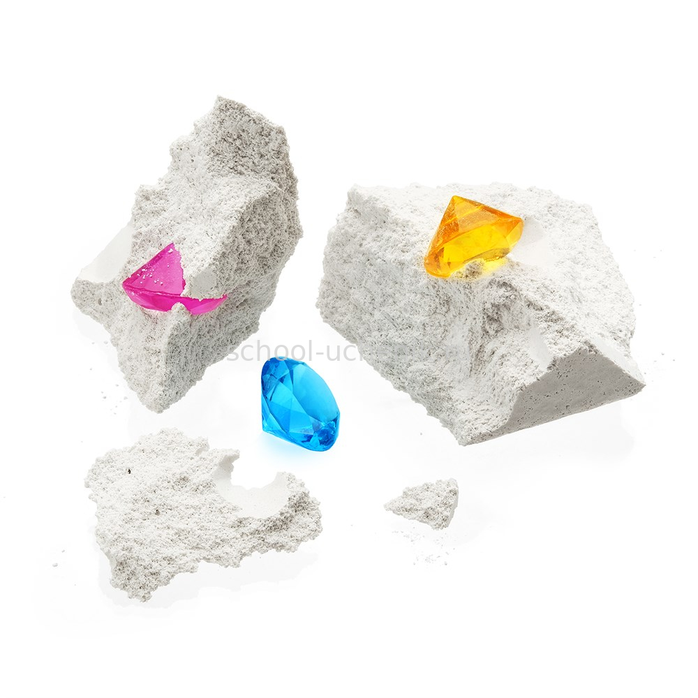 В наборе: брусок с артефактами внутри (россыпь находок из пластика в форме бриллиантов), деревянный стек для дробления. Цвета находок в ассортименте.