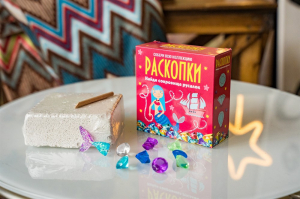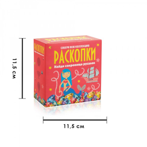 Сказочные русалки спрятали свои сокровища на дне океана, а ученые откопали их и доставили на поверхность. Осталось самое важное и интересное — с помощью специального инструмента из набора аккуратно извлечь драгоценности из толщи грунта. Самых внимательных археологов ждет награда — подвеска в виде хвоста русалки! А также много других сюрпризов. Для того чтобы проще было проводить раскопки, рекомендуем смочить брусок водой.