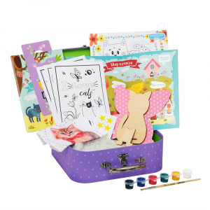 В большом чемоданчике — игровой набор с квестом по кошачьему царству. Чтобы помочь котикам и вернуть им игрушки, нужно пройти всю карту волшебной страны. Дети создадут необычные поделки, сошьют мягкую игрушку, найдут клад, сделают красивое украшение и оформят праздничные открытки. Скорее отправляйтесь в путь, выполните все задания и познакомьтесь с пушистыми жителями чудесной страны!