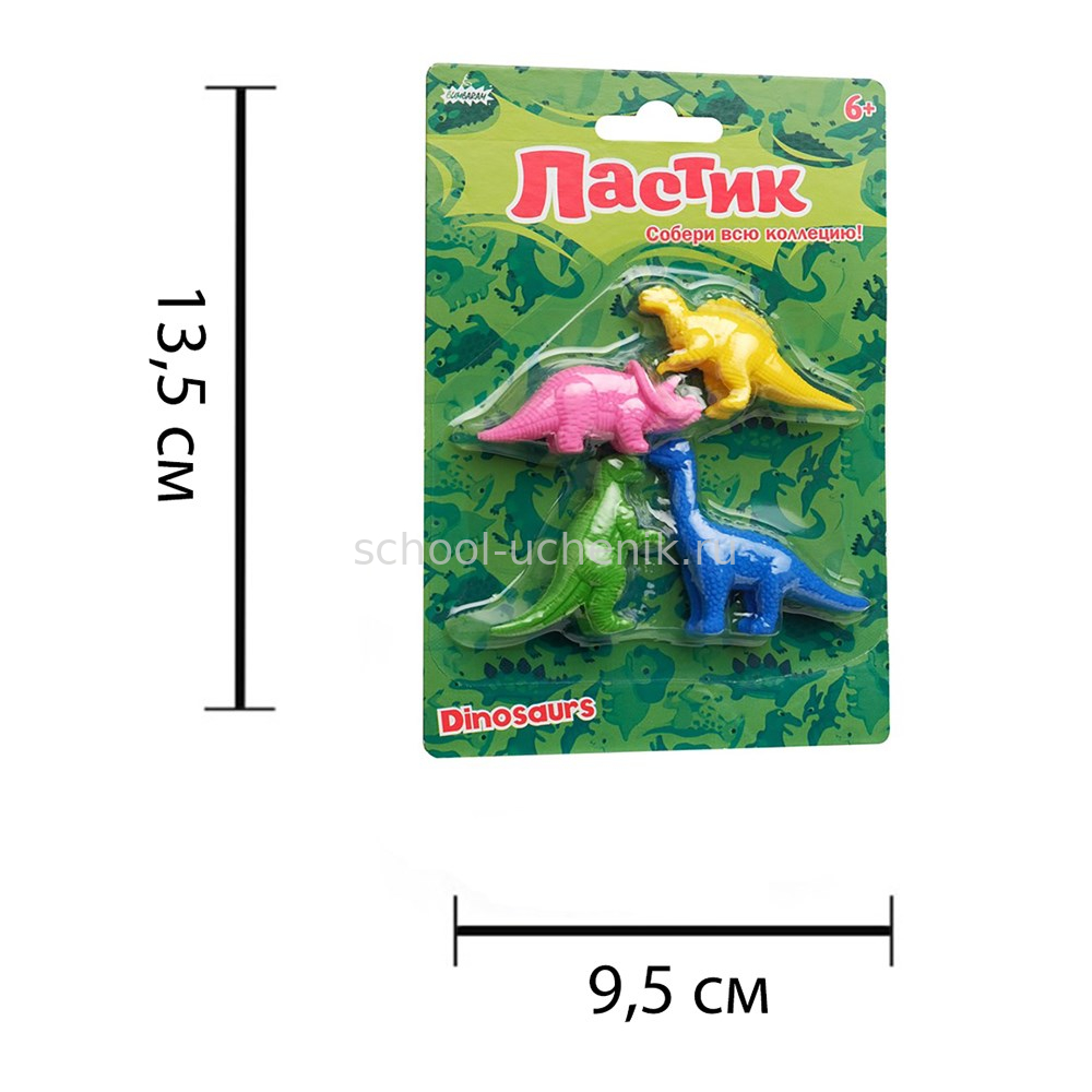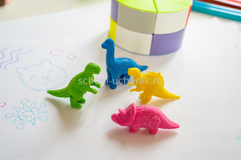 Эти разноцветные динозавры пригодятся в школе, на работе и дома. Набор состоит из четырех ластиков в виде разных доисторических животных. Мягкая резина облегчает процесс стирания. Коллекционеры порадуются детализации и качеству фигурок.