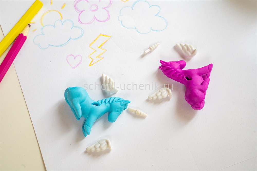 Внутри каждого ластика спрятана мини-игра для развития детской моторики и пространственного мышления. Разберите ластики на несколько деталей, а потом соберите снова. Нужно правильно запомнить порядок сборки и найти нужное место для каждого элемента пазла. Набор фигурных ластиков – хороший подарок для школьников и всех любителей единорогов.
