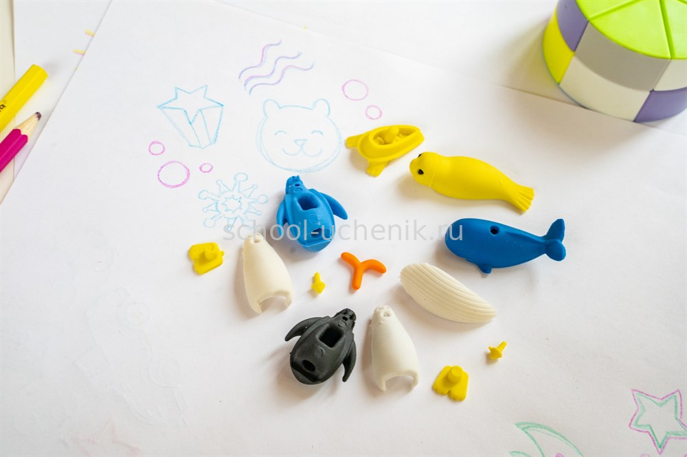 Эти морские животные – обитатели самых далеких и экзотических мест планеты. А еще это оригинальные ластики-пазлы, которые украсят любую коллекцию. Каждая из фигурок разбирается на несколько частей. Собирайте их на скорость, соревнуйтесь в ловкости и координации движений с друзьями.