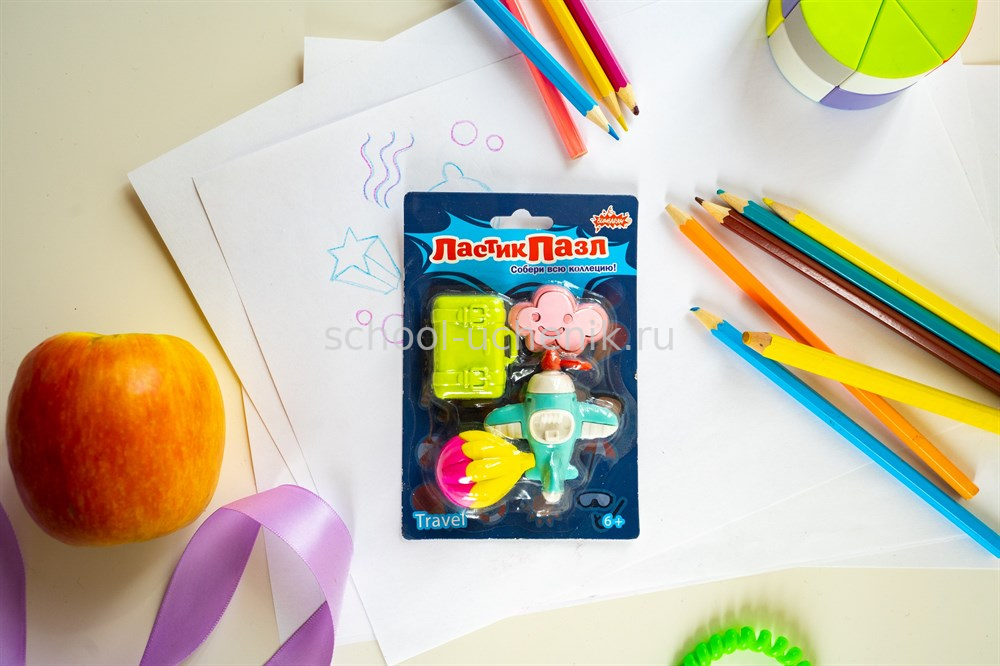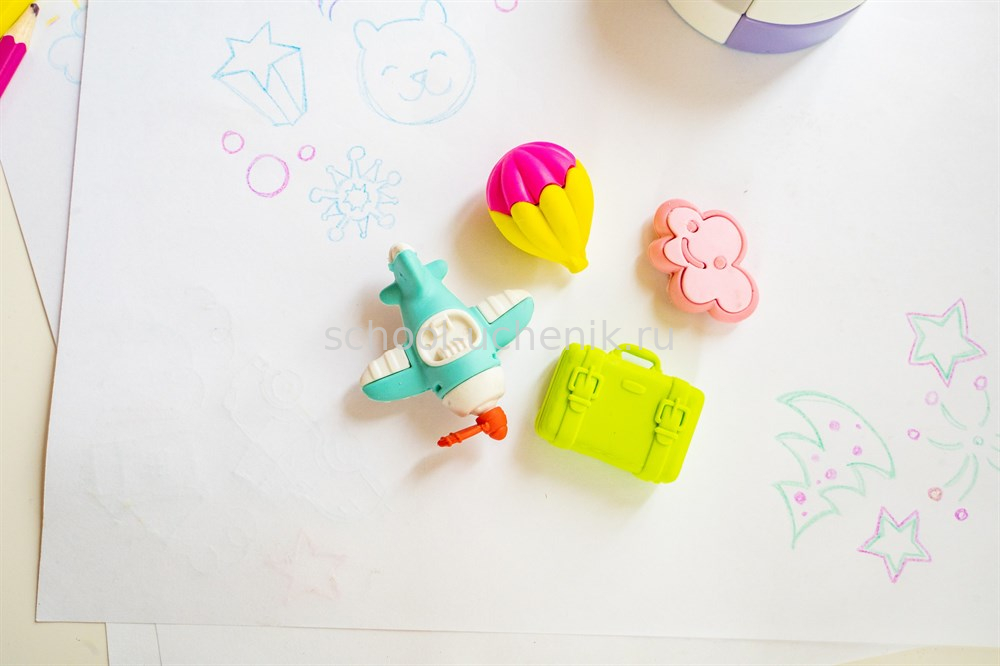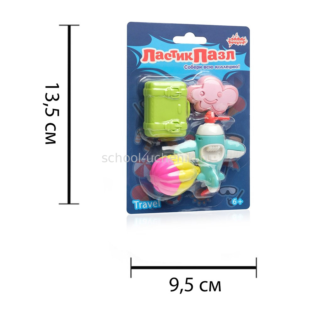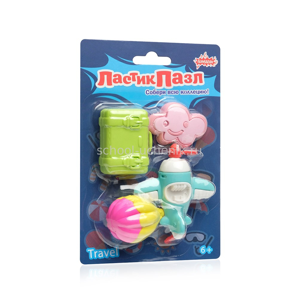 Отправляйтесь в яркое путешествие с ластиками-пазлами. В наборе вы найдете четыре ластика: воздушный шар, облако, самолет и чемодан. Все ластики-пазлы разбираются на много составных деталей и собираются обратно в цельные фигуры. Ластики станут оригинальным сувениром, а также новым аксессуаром для кукольного домика.