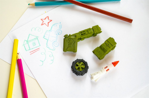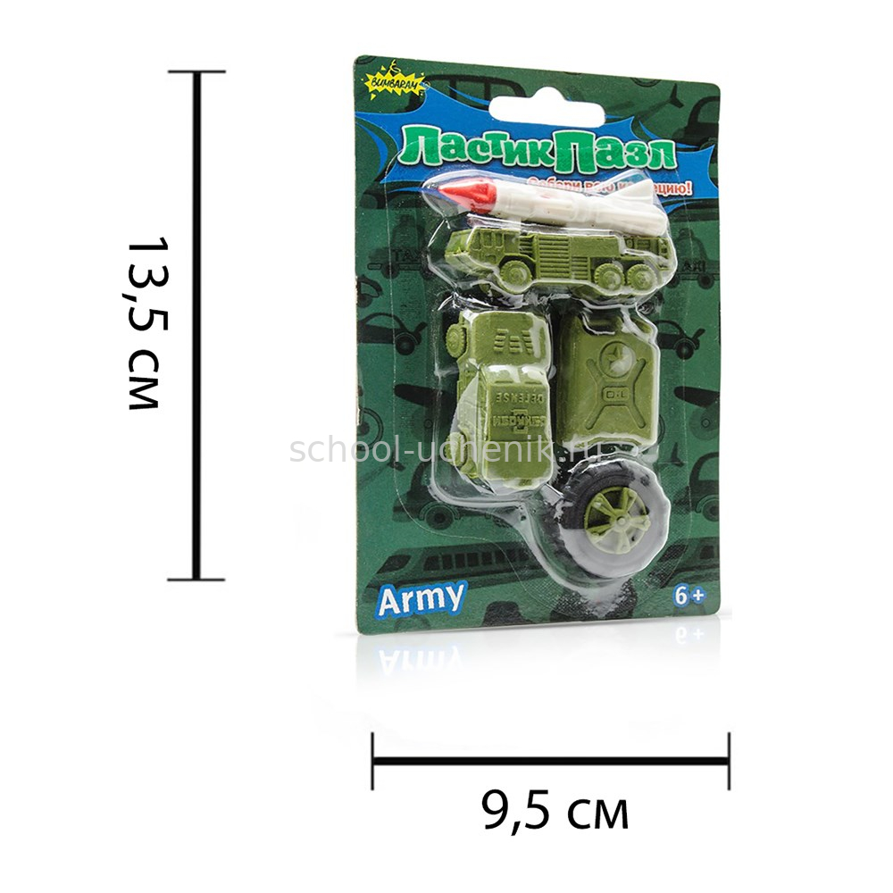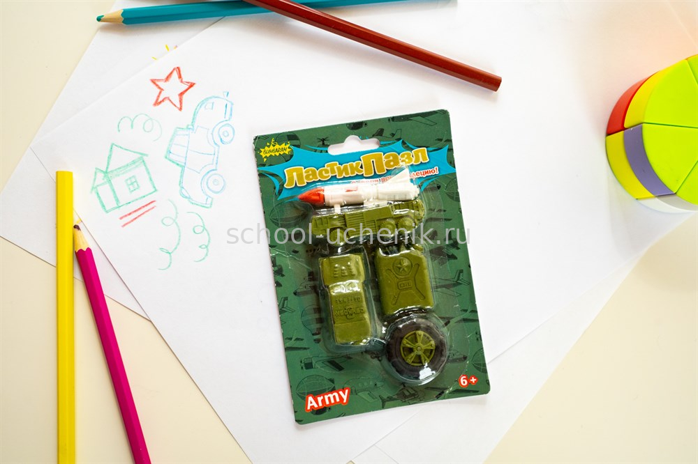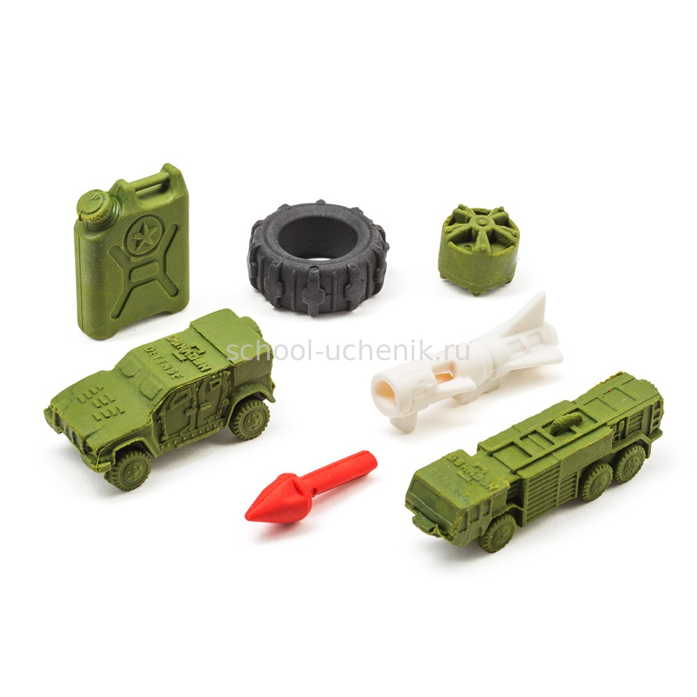 Один из самых оригинальных наборов серии — ластики в виде военной техники. Такие фигурки можно использовать как канцелярские принадлежности или просто играть с ними. Да и каждый ластик – это мини-игра. Разберите фигурки на части и попробуйте собрать их, соревнуясь на скорость.