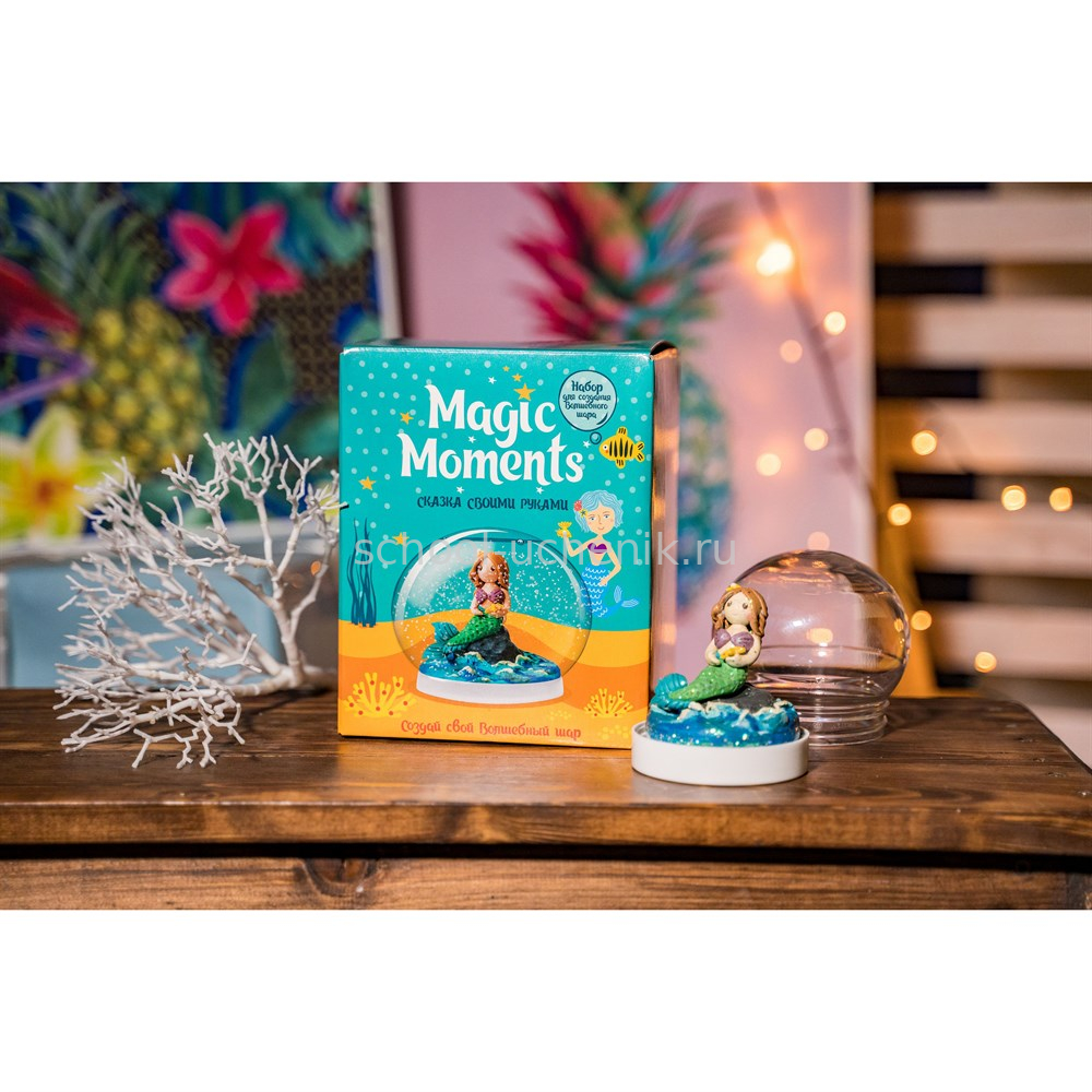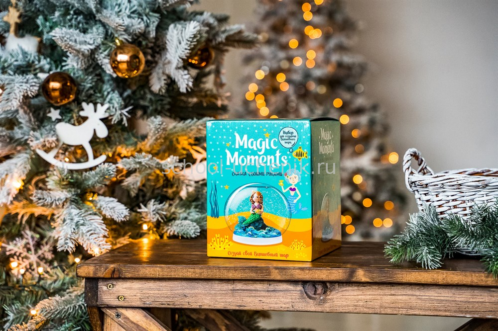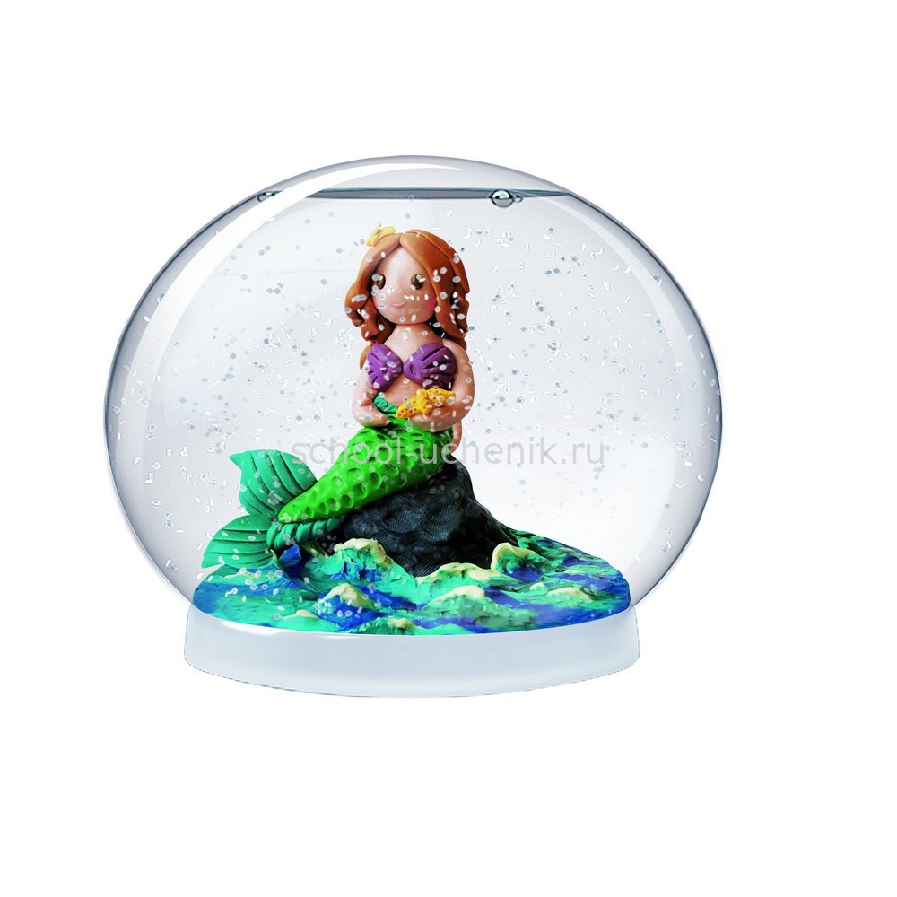 Создайте внутри прозрачного шара удивительный маленький мир! В наборе есть все необходимое для того, чтобы сделать свой сувенир. Слепите фигурку, пользуясь нашей пошаговой инструкцией. Прикрепите готовую композицию к подставке, добавьте в сферу воду, блестки, глицерин и специальную жидкость, а затем аккуратно соедините две части шара. Ваш Волшебный шар готов!