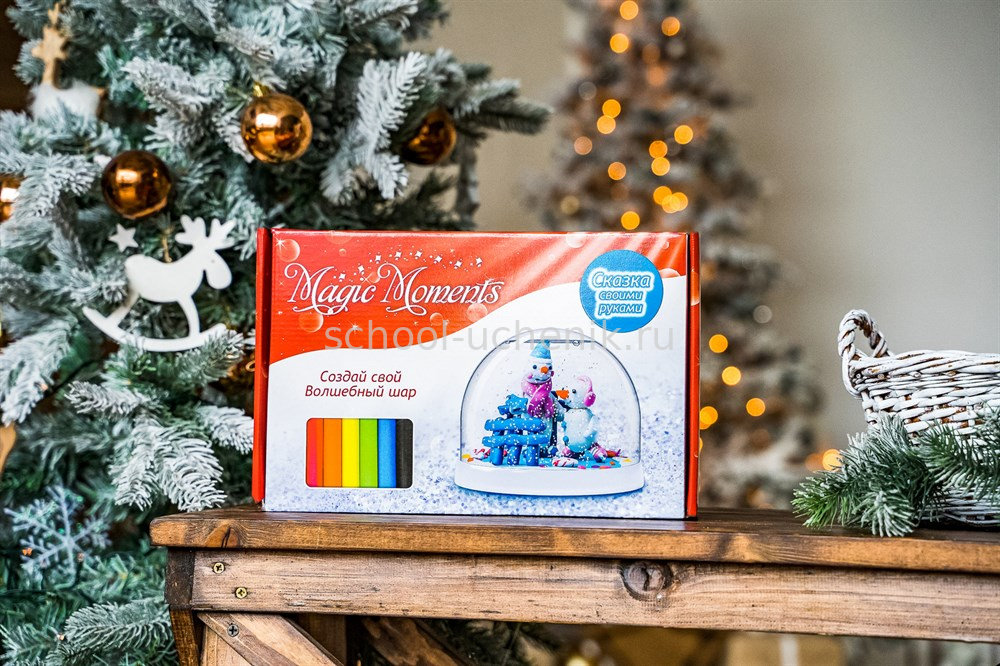 Набор для творчества «Создай Волшебный шар Снеговики» это чудесный и трогательный подарок. В наборе есть все необходимое для того, чтобы создать свой снежный шар. Слепите фигурку, следуя инструкции. Прикрепите готовую композицию к подставке, добавьте в сферу воду, блестки, глицерин и специальные жидкости, а затем аккуратно соедините две части шара. Посмотрите, как красиво кружатся внутри маленькие снежинки. Ваш Волшебный шар готов!