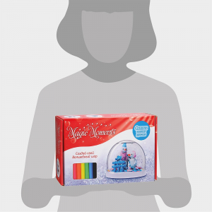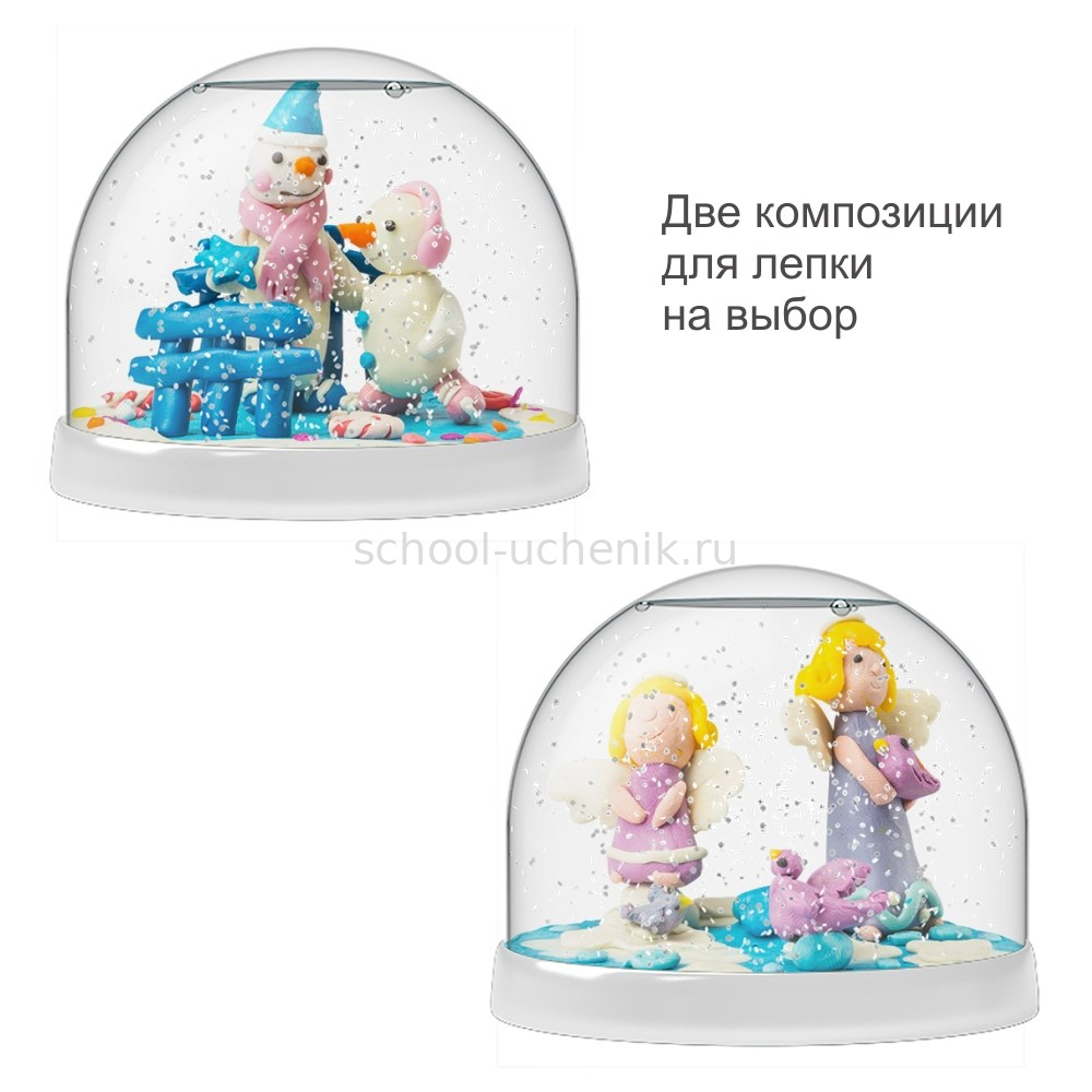 В наборе: подробная инструкция, сферическая основа для шара, цветной пластилин, доска для лепки, подставка для композиции, специальные жидкости, блестки для создания снежного эффекта.