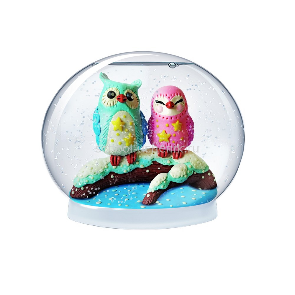 Создайте внутри прозрачной сферы настоящее новогоднее чудо! Слепите фигурку, следуя понятной, пошаговой инструкции. Теперь закрепить ее на подставке, добавьте в сферу воды, блестки, специальную жидкость. Волшебный шар готов!