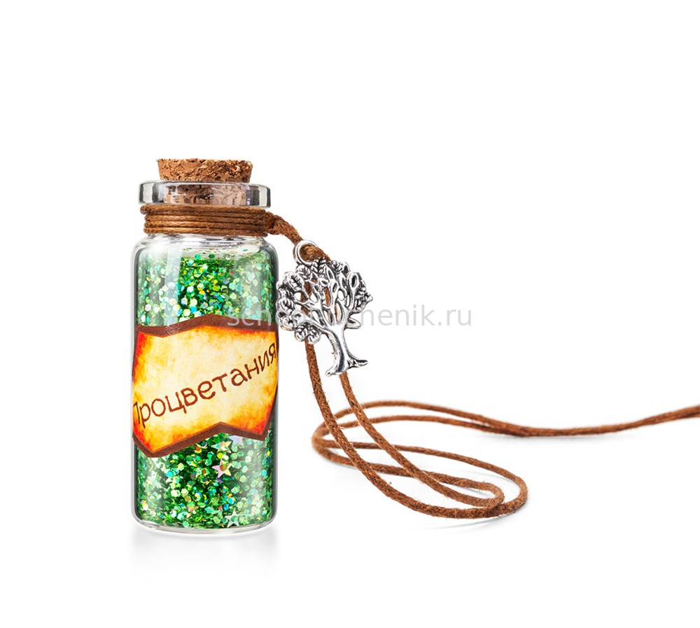 На праздники мы всегда желаем друг другу всего самого лучшего. Почему не придать этому желанию материальную форму? Сделайте оригинальный сувенир с пожеланием процветания и подарите его близкому человеку. Ваше пожелание не забудется и сохранится на долгое время в виде необычного аксессуара. В наборе уже есть все необходимое для создания декоративной бутылочки с пожеланиями, которая может стать красивой подвеской или сувениром.