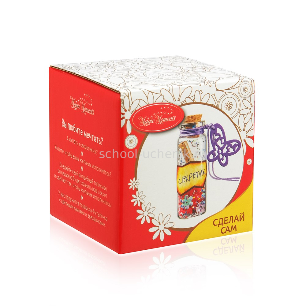 Перед вами творческий набор, который помогает мечтам стать реальностью. Дайте волю фантазии и создайте оригинальную бутылочку, в которой заключено волшебство. Волшебные ингредиенты в наборе позволят создать уникальный талисман, который можно использовать в качестве подвески или сувенира. С набором для создания волшебного талисмана так просто поделиться с близкими людьми своими лучшими пожеланиями.