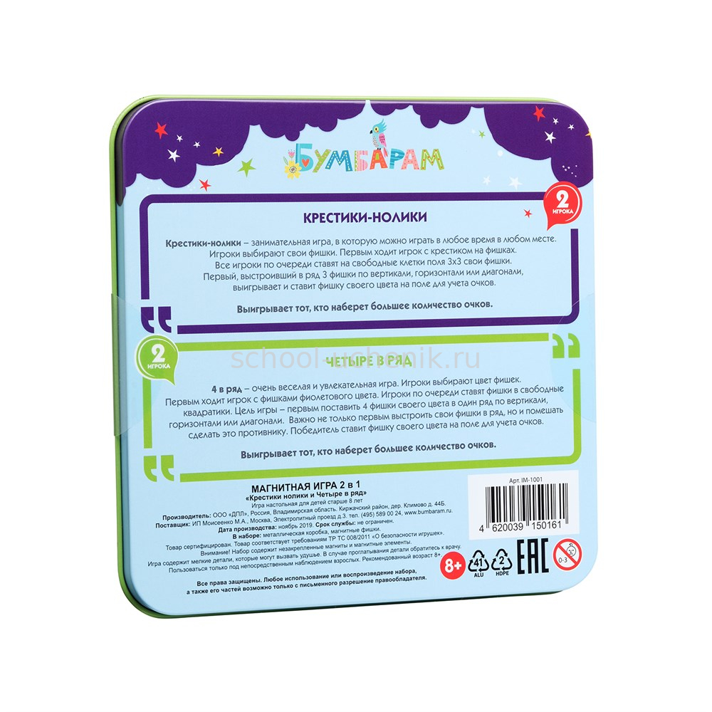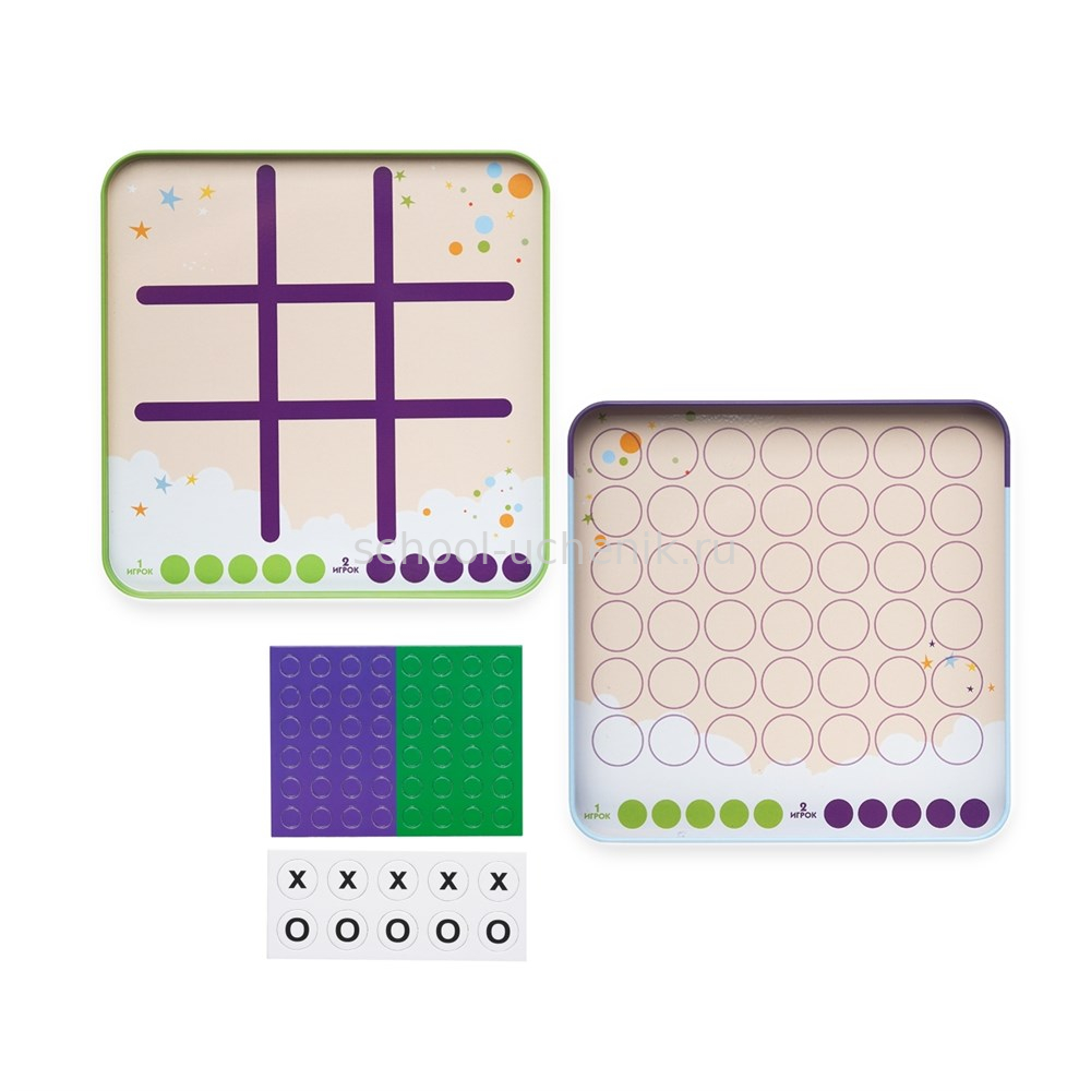 В одном наборе вы найдете 2 самые популярные игры, в которые можно сыграть с другом. «Крестики-нолики» и «4 в ряд» не занимают много времени, зато отлично развивают логику и стратегическое мышление. Попробуйте первым выложить ряд фишек одинакового цвета. Ваш соперник сделает все, чтобы вам помешать!