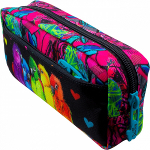 Пенал имеет одно большое отделение, второе расположено на передней части, в которых удобно можно разместить все ручки и карандаши.